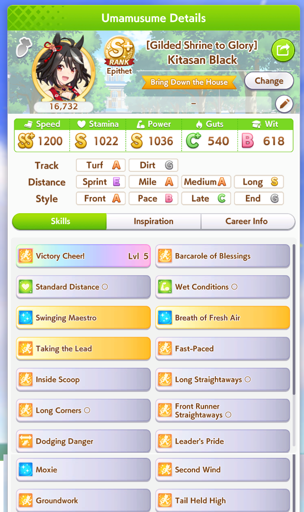 Good point. Also none of the other umas I like to train can really benefit from guts runs (they don't have speed + power growth) so I suppose I don't need it after all.