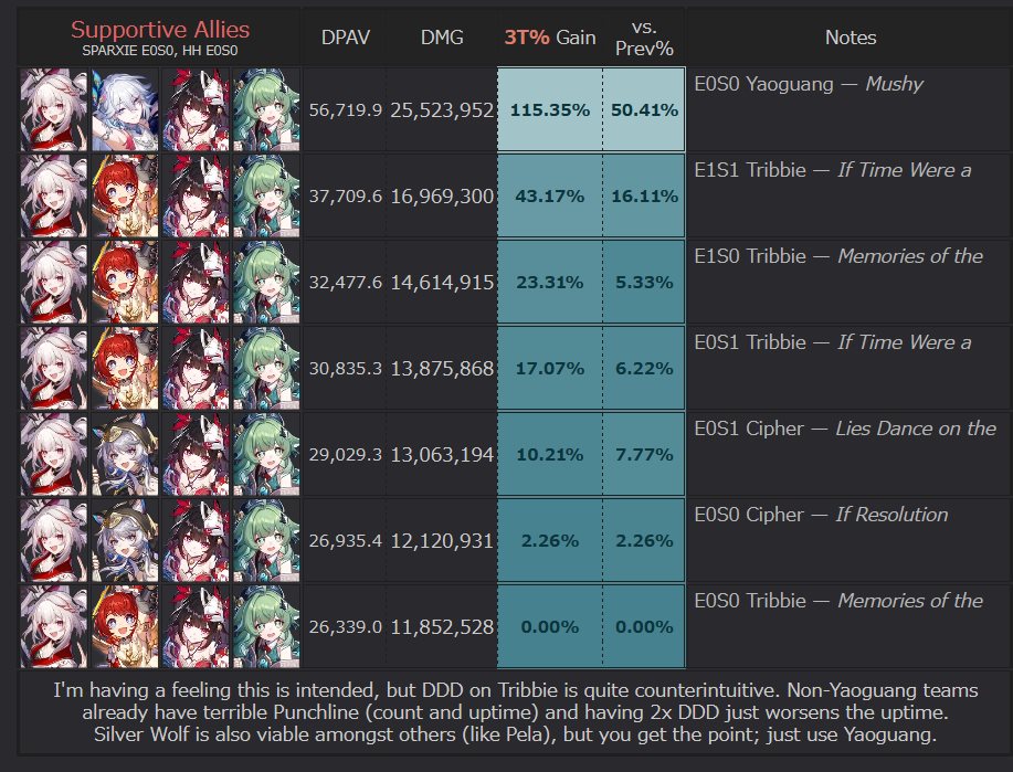 Chances Sparkle/Sparxie joins the crew? Shes the first one knocked out so I can only assume she will help the TB more during the remaining patches. They also have top notch chemistry