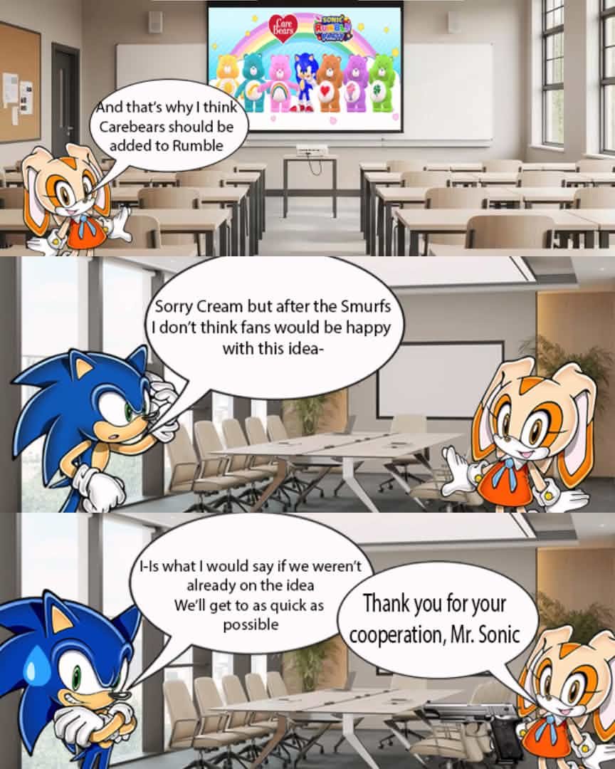 >>561275283>Knuckles boxing game or wave defense on Angel Island>Rouge in a Monnaco 1 like game>Tails in any mechanics/building sim for the tests>Amy as the protag for Dating Sim slop>Sonic but in an actual good game