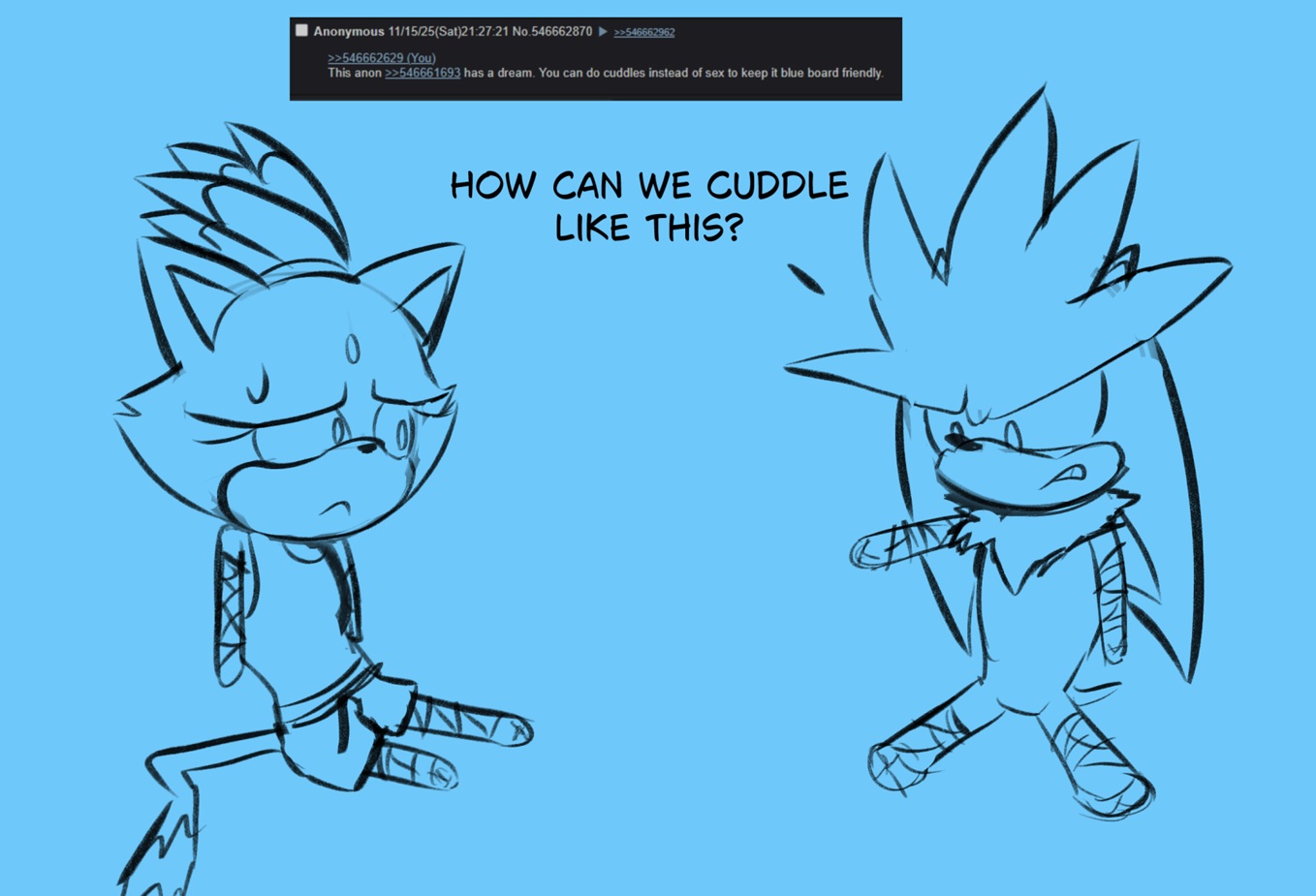 >>561278659Sonic having sex would mean he lost his virginity and Sonic never loses when it matters most