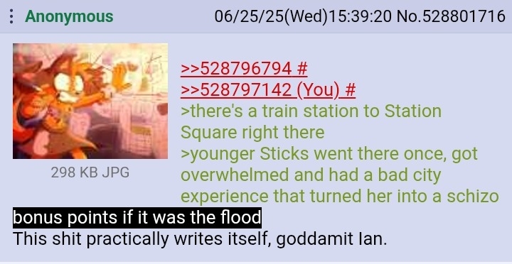 >>561301794>Sonic isn't for you anymoreWhat do you expect me to do then? Get some shitty job so I can marry some mid harpy and have a bunch of shithead kids? No thanks, ill stick with Sonic