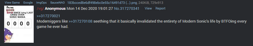 >Say something objectively right about Sonic and Modernshit grimdark drivel being shallow garbage.>Darkagevirigns seethe to oblivion.
