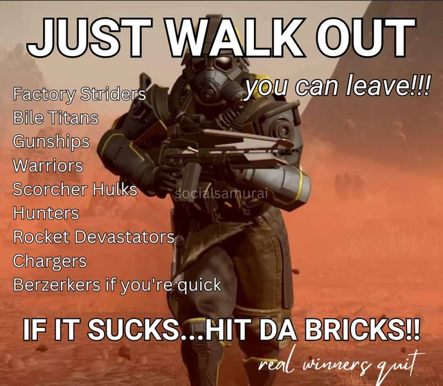 >>561294015>>561294336I have a solution: C4 charges planted in the skulls of every Helldiver rigged to explode if they wander more than 100m away from each other.