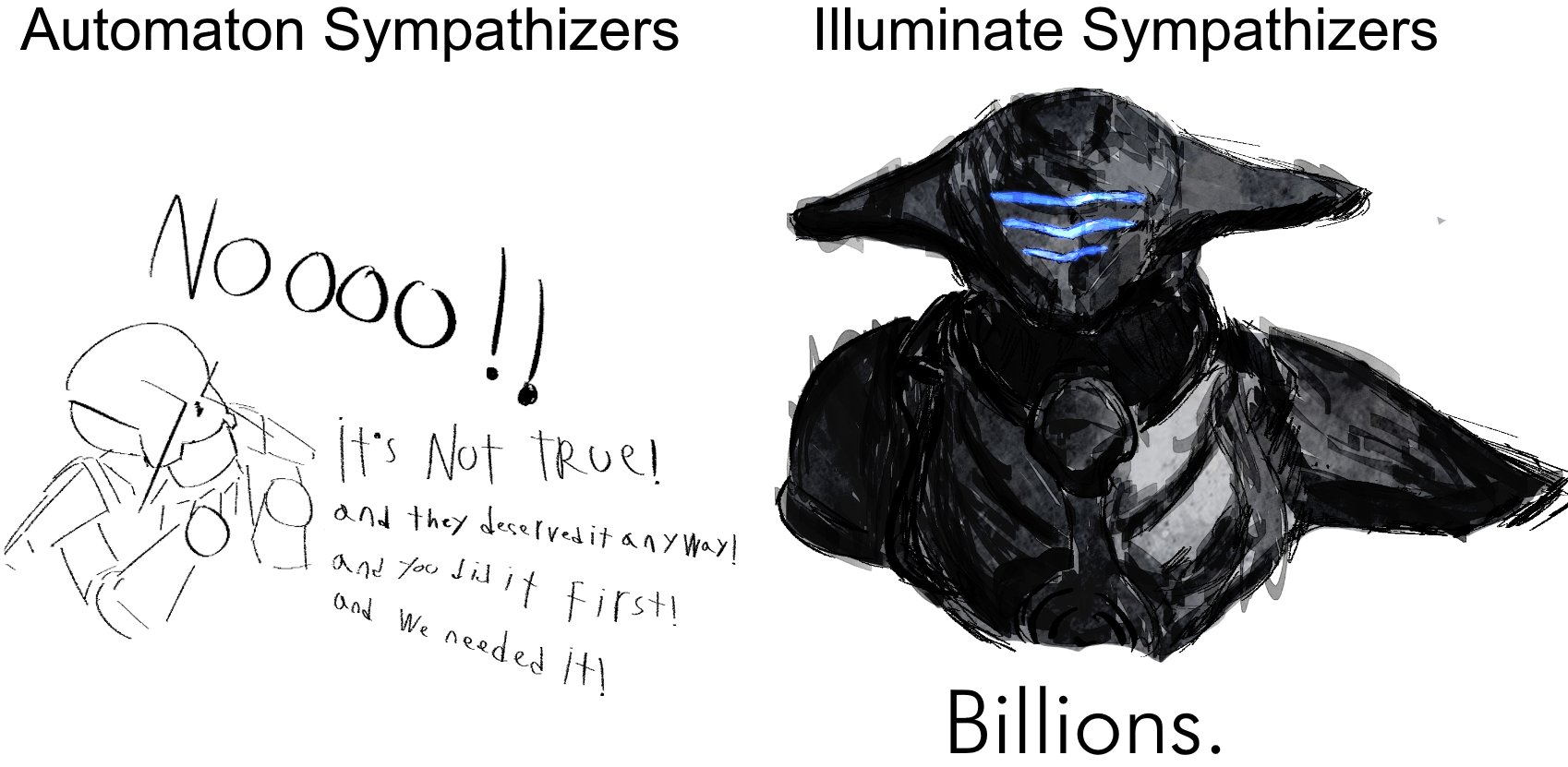 >>561292983Fuck it. Cultist cope is back on the menu.>Illuminate are abducting Civilians again>only this time, the civvies are coming to them>the Voteless is when the process is done against their will>but the Ghoul is when its done willinglyAlso, I noticed that the original spawn points for the Illuminate were wormholes. They might do something similar for the reworked Cultists, as class 3 Exo-storms have reality itself breaking down. >"bu-buh-but anon! Cultists were cu-cu-cut!"Trust the process
