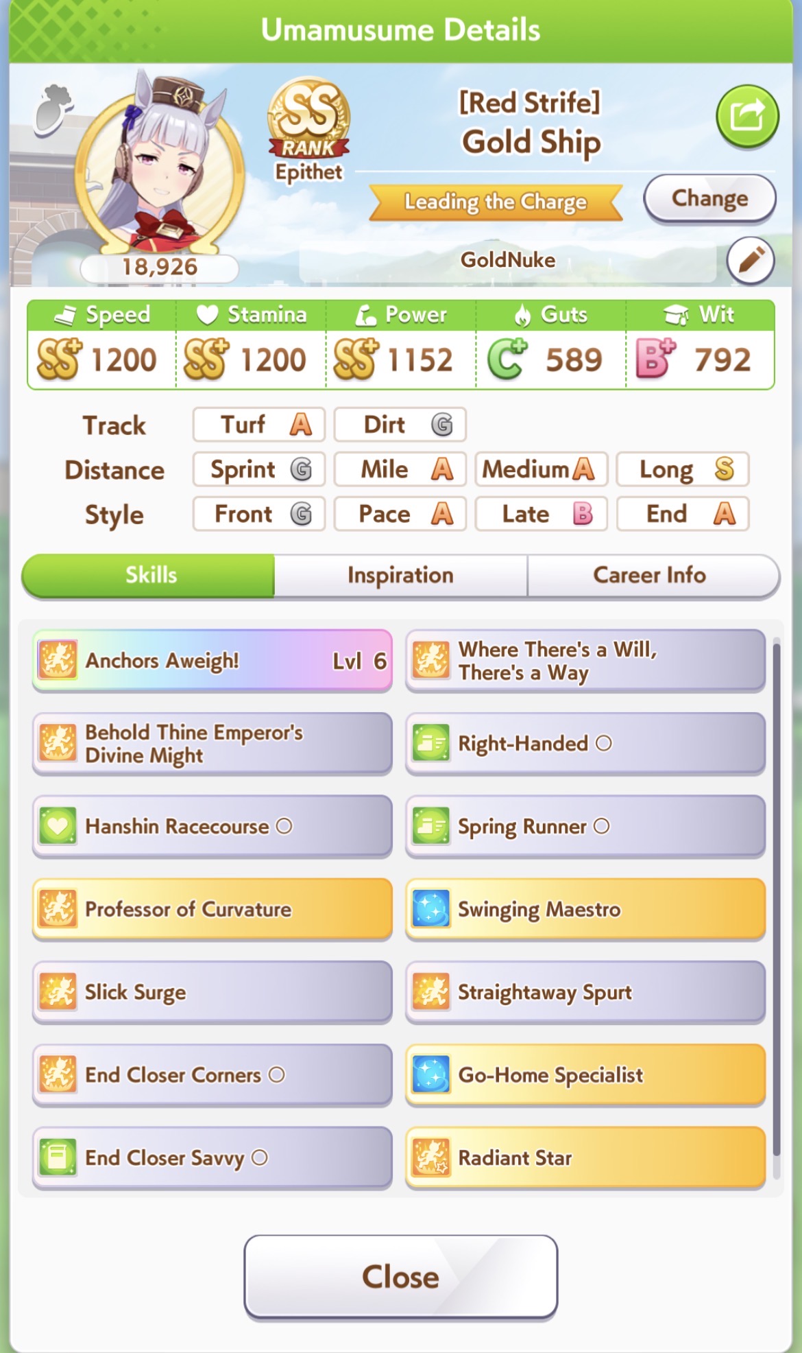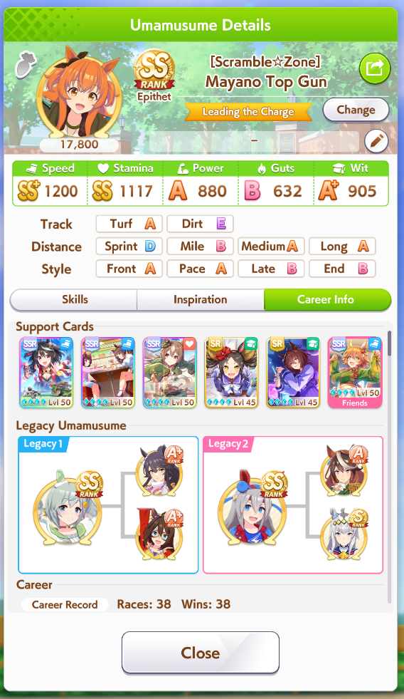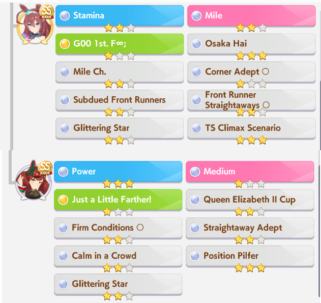 My goldships are coming out trash in mant. Can you guys share your decks? My only mlb SSRs are kitasan and FM, my stinko is only lb1. And can you even get stairway spurt from the after race skill drops?