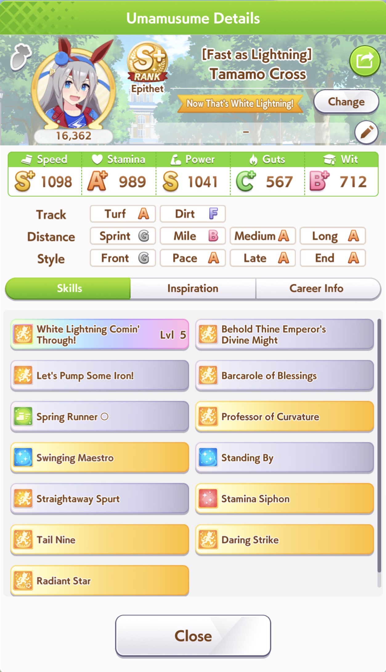 >>561295156>giga stats>100% spurt rate>straightaway spurt>basically nothing elsewill carry you to the finals and then do nothing and make you throw your phone across the room