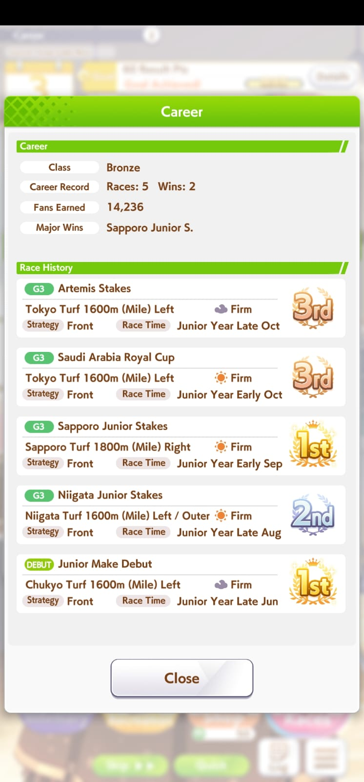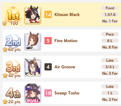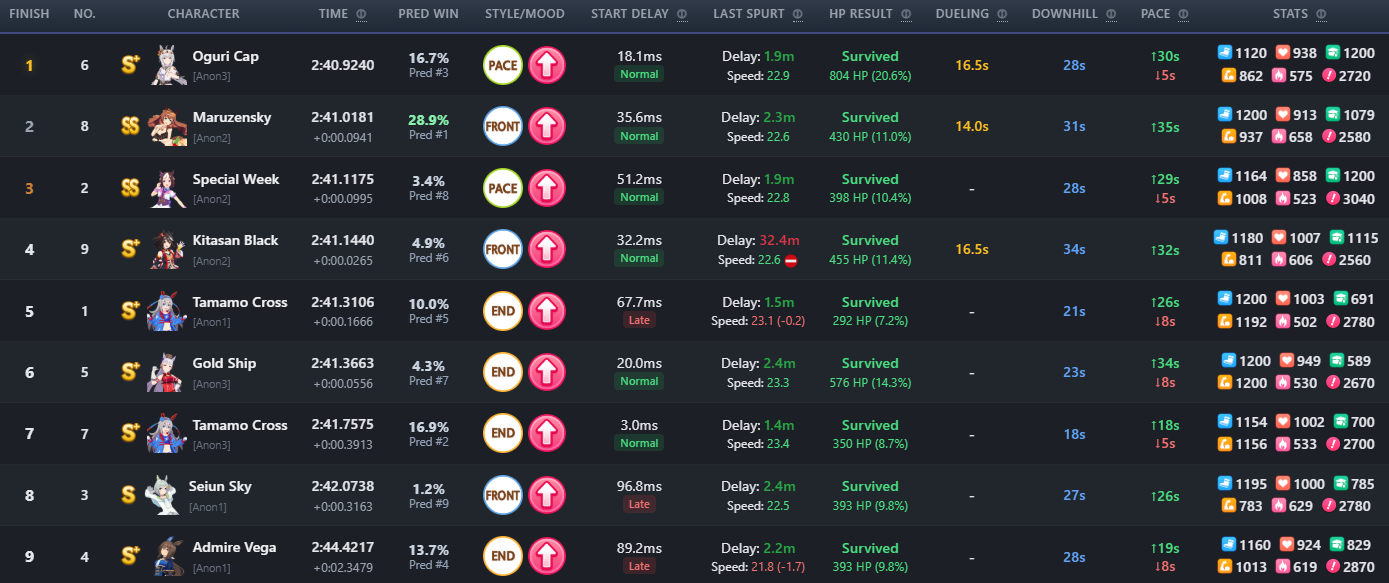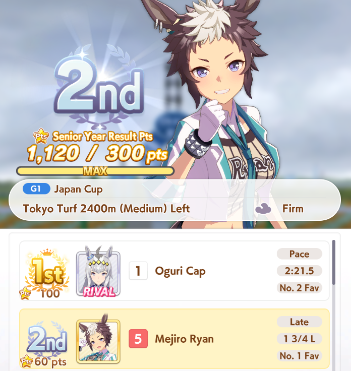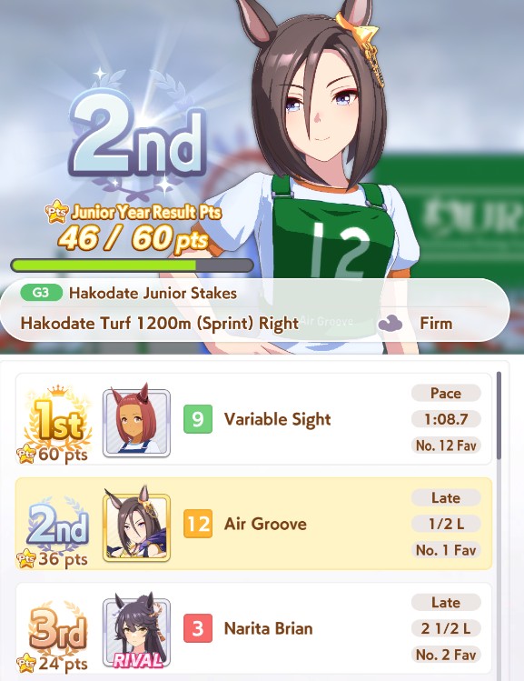 >36 wins>3 more skills off the board>1 speed 1 late>3 2* skill hints>0 race hintsthanks cygames