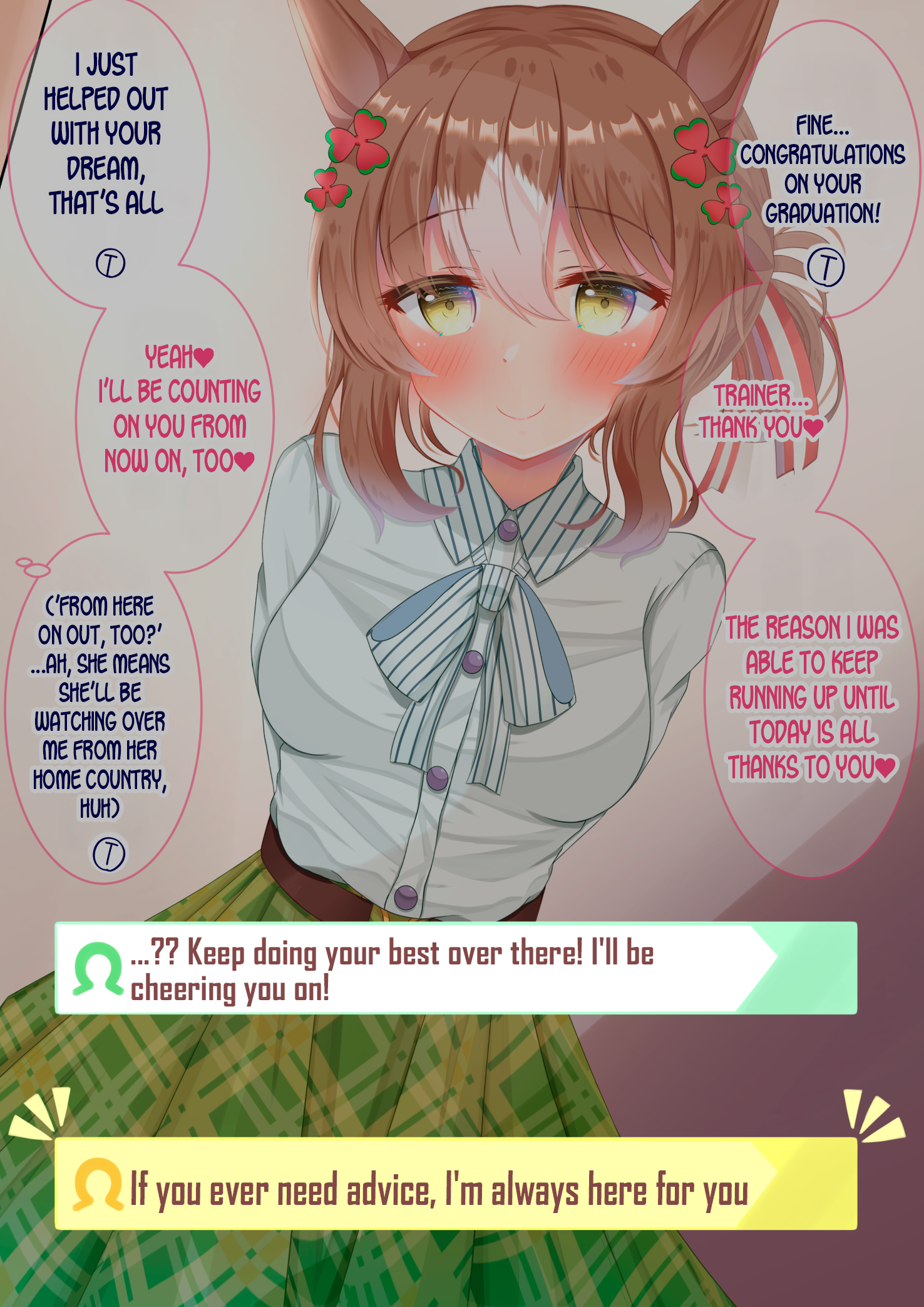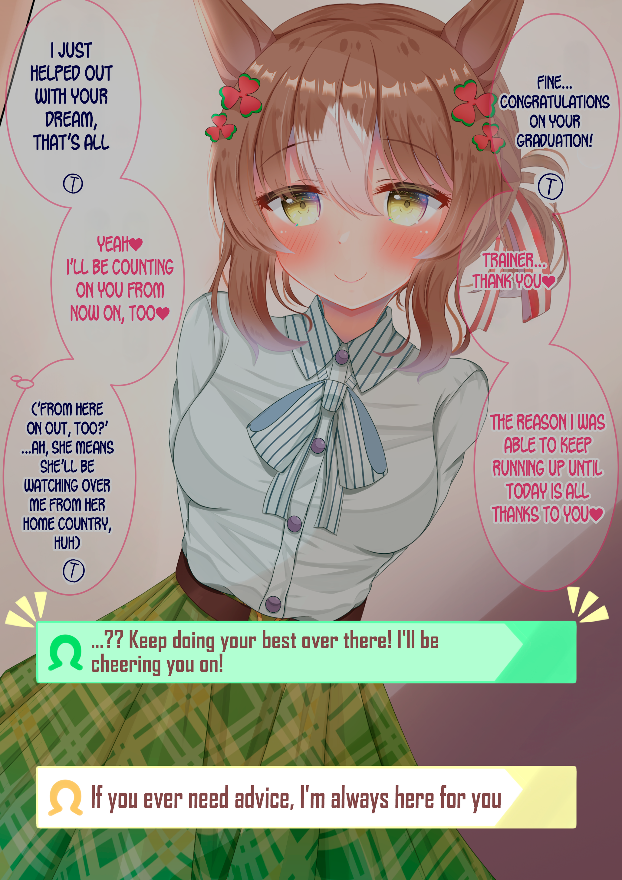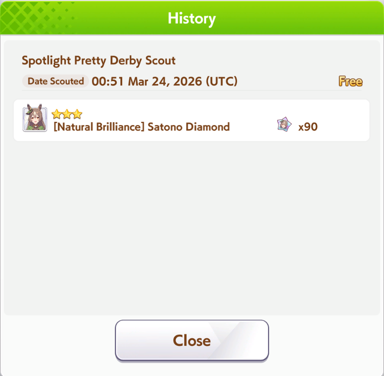 Previous: >>561277471>Global Game NewsLink your account to Cygames iDCurrent Scenario: Make A New Track aka "Trackblazer"Current Rate Up Trainee: Satono Diamond (3*)Current Rate Up Support Cards: SSR Marvelous Sunday (Guts), SR Curren Chan (Speed)Current CM: Pisces Cup - Hanshin Turf 3200mhttps://umamusume.com/news/632/03/02 - 04/14 - Halved TP Cost & 2x Career Mode Rewards03/12 - 04/15 - Paid 3* & SSR Selector available in Carats Shop03/12 - 03/24 - Free Daily 10-Scout03/12 - Flying Run-Up! Story Event03/22 - Satono Diamond (3*), Curren Chan (SSR), Marvelous Sunday (SSR)03/23 - First Anniversary Part 303/23 - Agnes Tachyon, Narita Taishin, Narita Brian legends races03/26 - First Anniversary Part 403/26 - Mejiro Bright (3*), Curren Chan (SSR), Zenno Rob Roy (SSR)03/26 - 04/05 - Pisces Cup - Long/Right/Spring/Heavy/3200https://pages.snep.pw/uma/anni-skill-changes/>JP Game NewsCurrent Rate Up: Victoire Pisa (3*), AI-Chan (3*), SSR Yanko, SSR CasinoNew Scenario "Beyond Dreams" releasedTimeline: https://uma.moe/timelineCygames Webstore: https://webstore.cygames.com/en/umamusume_en/>Thread Clubshttps://rentry.co/umaglobalclublistYou must be E3 (20k points) to join a circle. Apply with /uma/ or /vg/ in your profile or post ID in the thread.>All Guides & Resourceshttps://rentry.org/uma26Game databasehttps://gametora.com/umamusume (Click the gear to switch between JP / global server info)A basic guide for newfagshttps://rentry.org/umaglobalFind networks if your region is blocked from the game or clienthttps://www.umavpn.top/Seiyuu & Concertshttps://rentry.org/umstUmamusume Birthday Calendarhttps://ウマ娘.攻略.tools/events/birthdayUma Texthttps://umareader.idsmile.xyz/