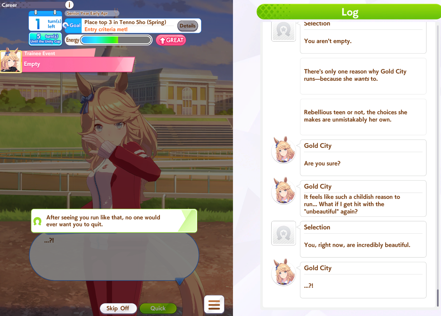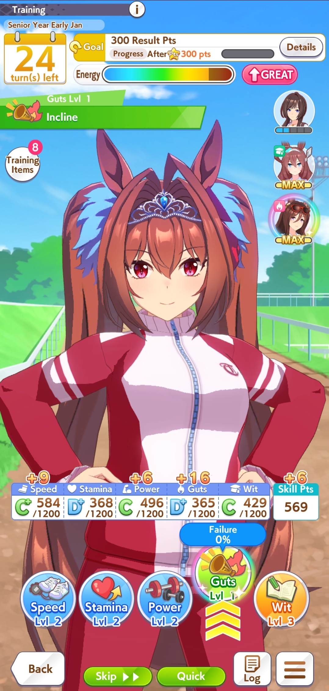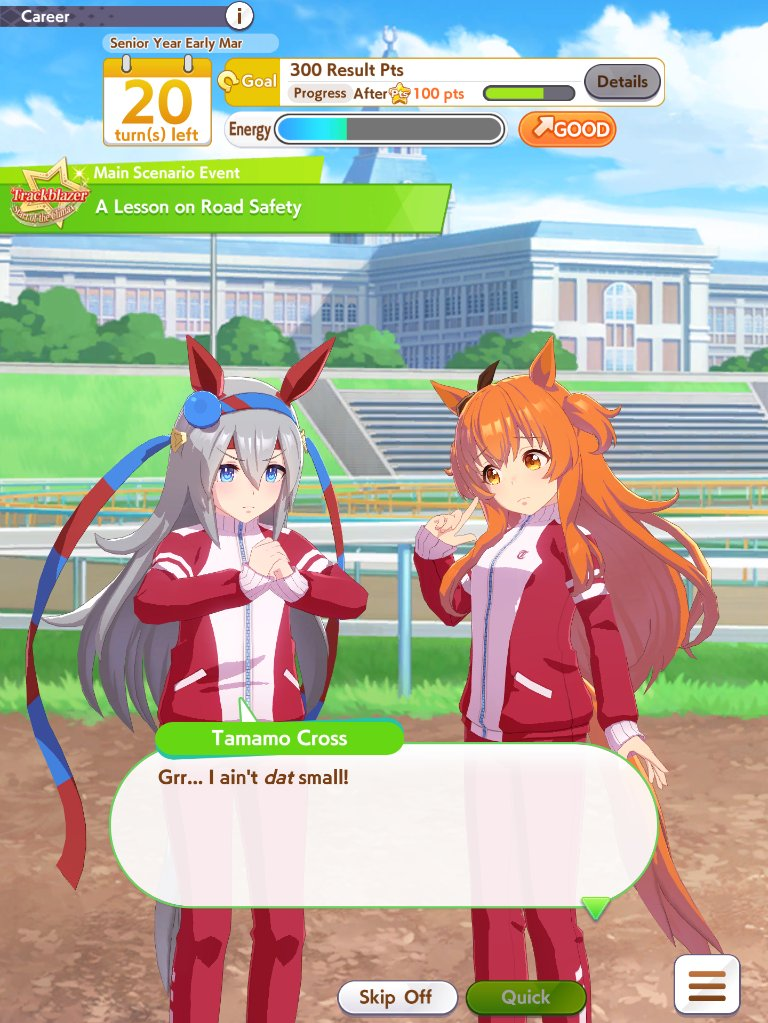 >>56130996560 stats + mile straightaways (in tiara route) for skipping a mile G150 stats for skipping classic QEII, only 30 for skipping senior