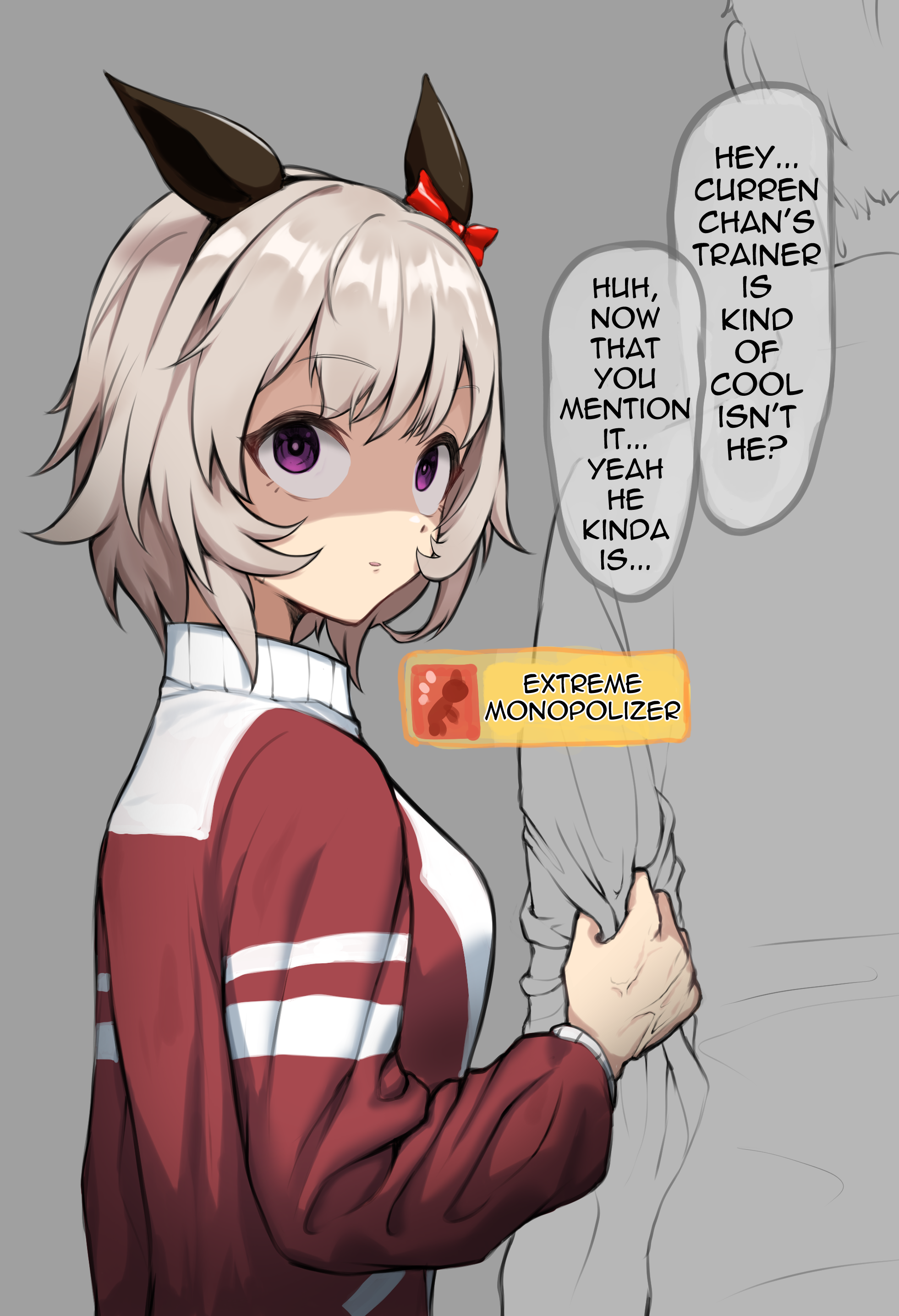 Romcom anime with Lord Kanaloa as MCIt's harem but he spent most of the screentime with the main girl Curren Chan however at the end of the story he end up marrying the dumb gyaru Fusaichi PandoraDuring the honeymoon Fusapan, aware of how Kanaloa used to chase Curren during his entire high school years, cosplayed as Curren (very thick version) before sex, Kanaloa told her "You don't have to go that far you know, I have moved on" but then Fusapan was seeing the biggest erection she had ever seen then not long after she experienced the wildest sloppiest Umapyoi ever in her entire life.