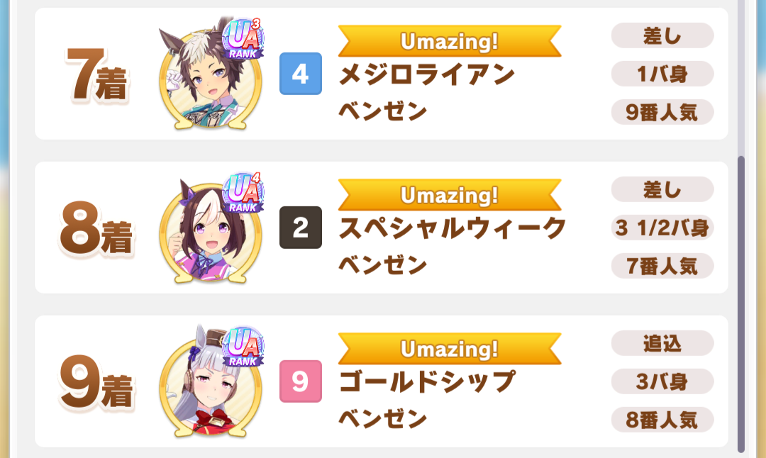 I'm ready for my 3rd place in A finals as usual.Btw I made every uma only once.