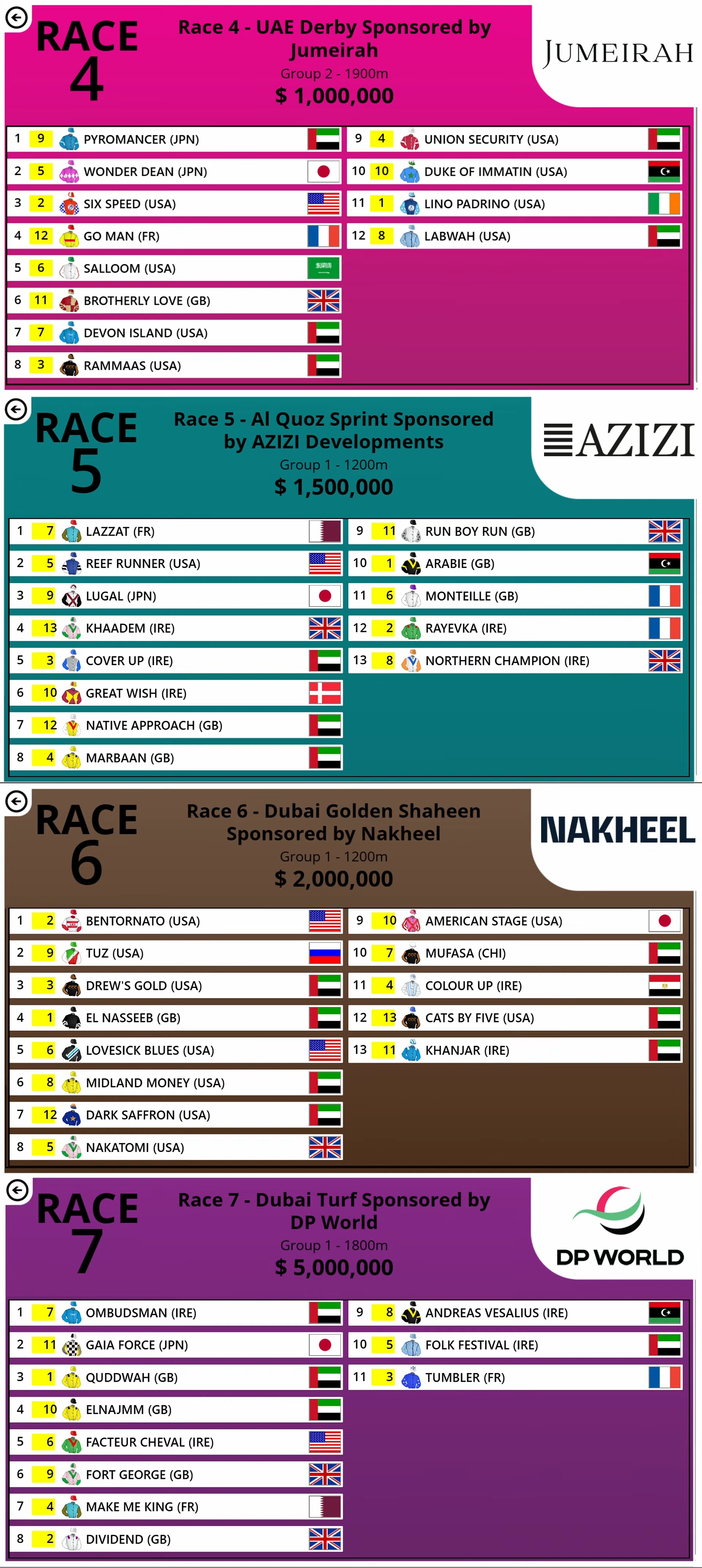 >>561435392That's because they're showing the ownership's flag instead of where they're trained. Tap Leader & Imperial Emperor are UAE-trained, and Hit Show is USA-trained