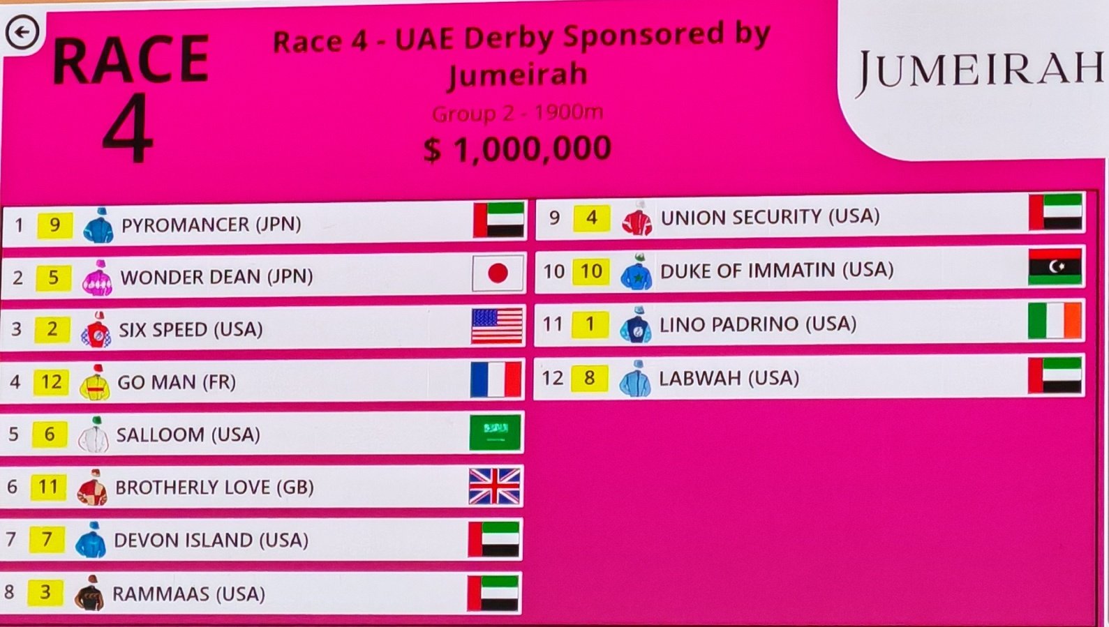 >netkeiba posted UAE Derby gate draw results, Pyromancer got 2 >oops my bad, he actually got 9 What a bummer