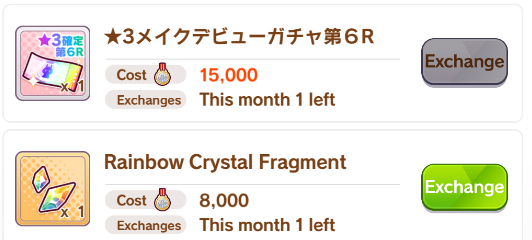>>561474723A rainbow shard, dupe character isn't worth it unless you can get enough medals to buy both.