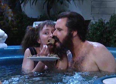 "Andrew, Ashley... it is so nice to share this evening with another pair of young luv-ahs in the scolding hot waters of this hot-tub. Would you care for some lamb shanks?"