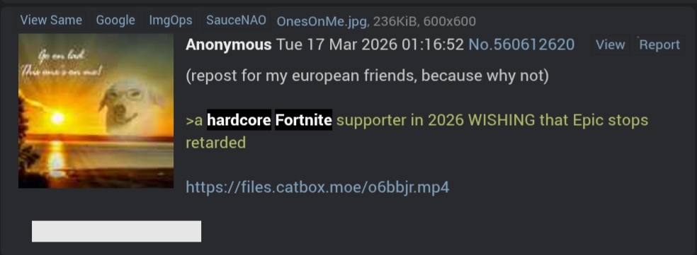 >>561352026>The downturn in Fortnite engagement that started in 2025 means we're spending significantly more than we're making>Gooners are willing to fund your game ala Kim K skin sales>Timmy panders to wokies instead>Can't fund the gamekwab