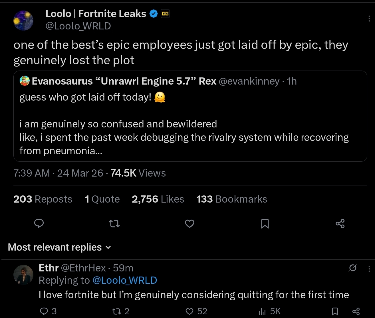 >last time epic fired this many people the game started having all kinds of bugs pop up