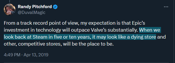 I'm enjoying seeing epic games get whats coming to them on X and this spicy tea. wishing all these devs the best. fortnite is cooked. fuck you tim