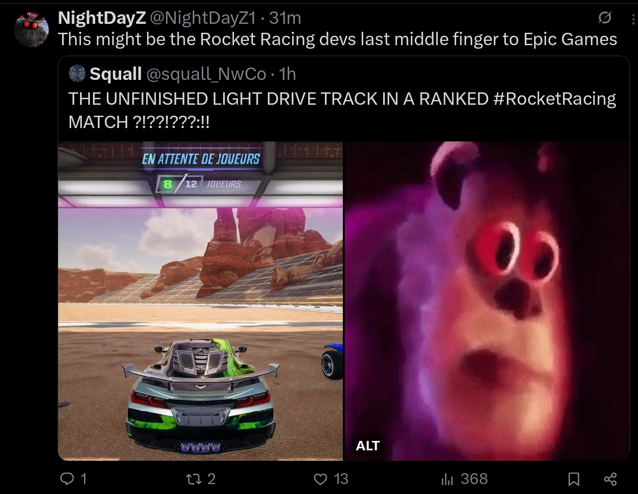 I wonder if there's any chance they'll add Rocket Racing to Rocket League. At least this makes it less likely that they'll try to shove RL and Fall Guys into Fortnite. We really don't need more bloat.