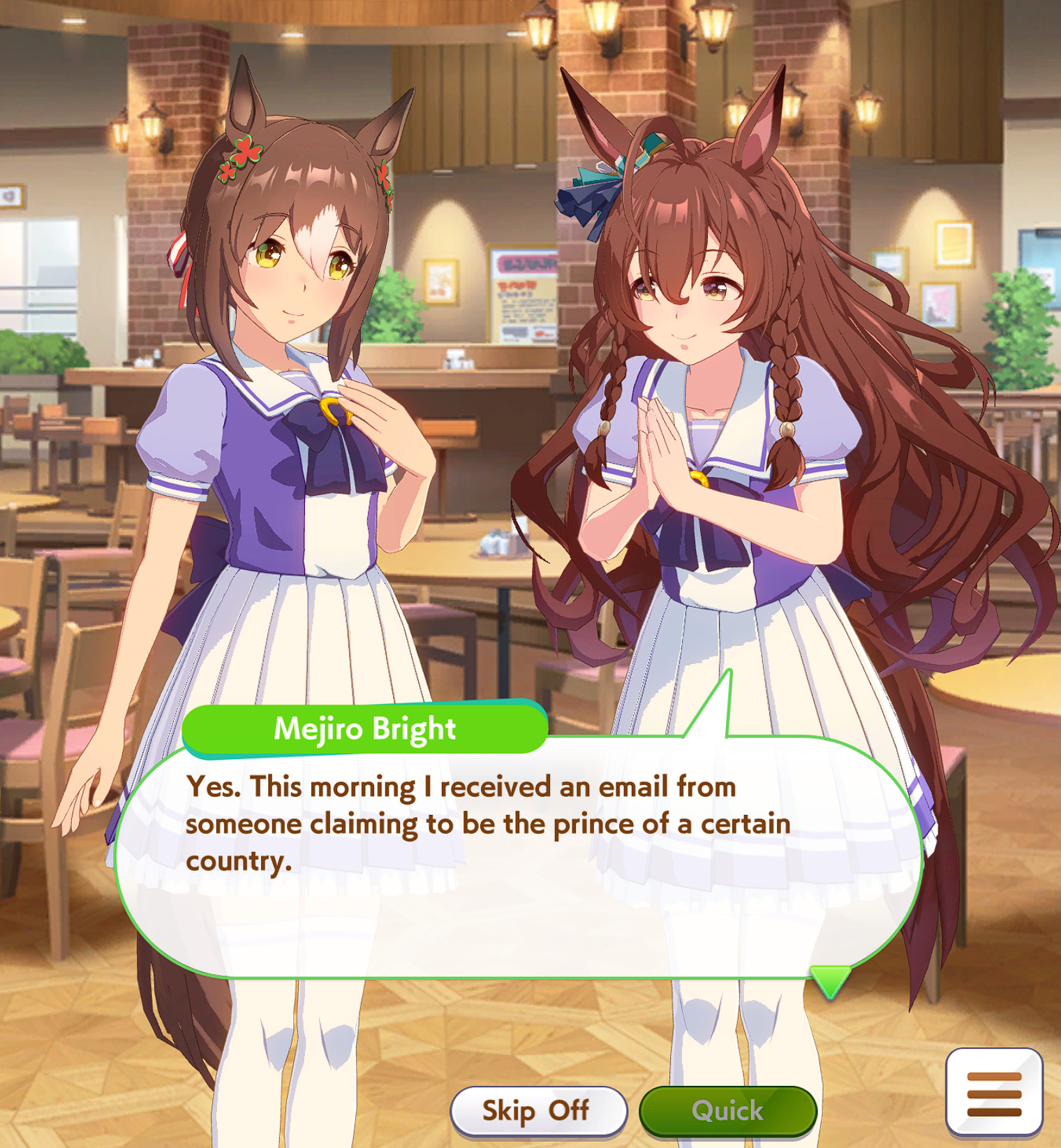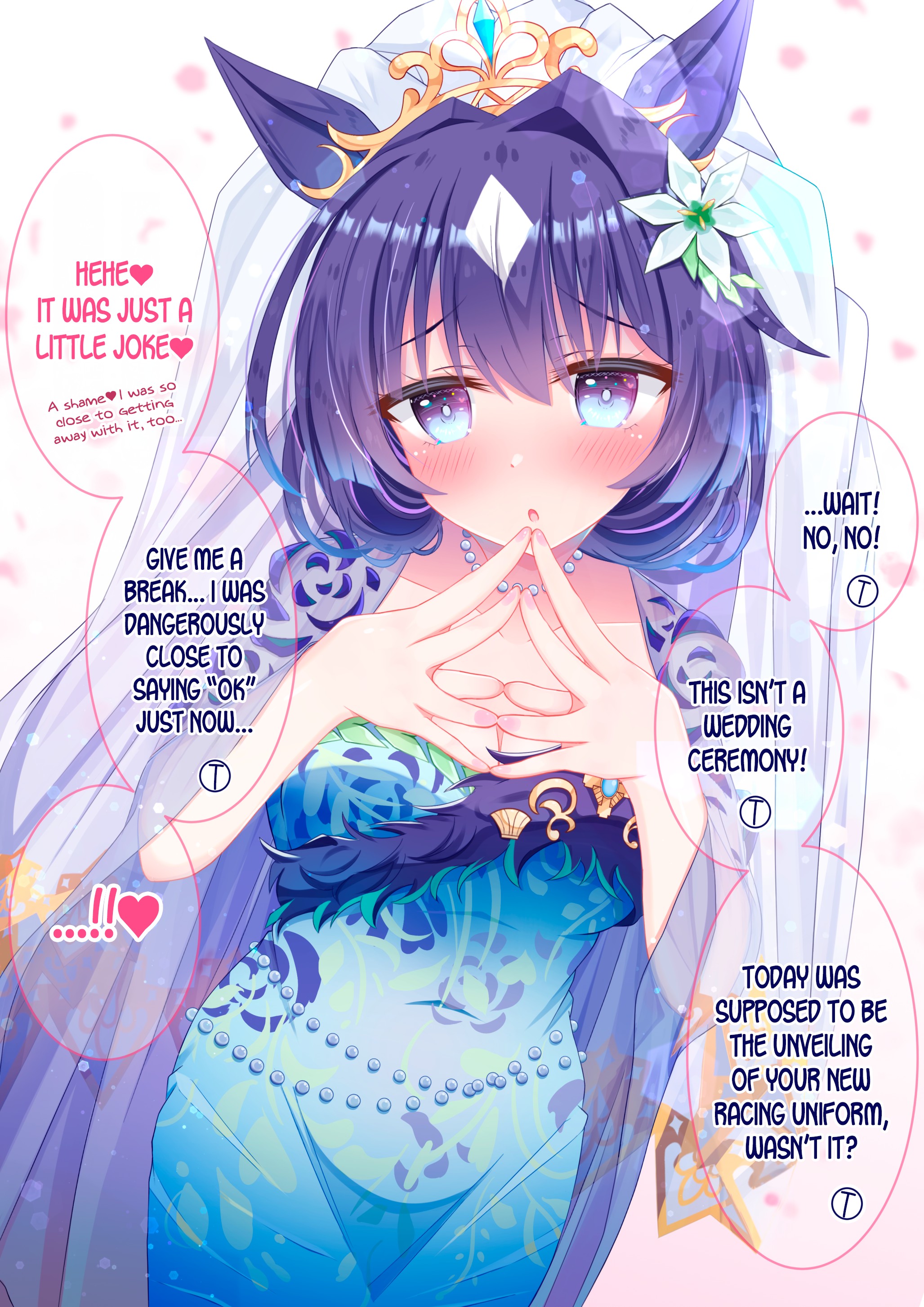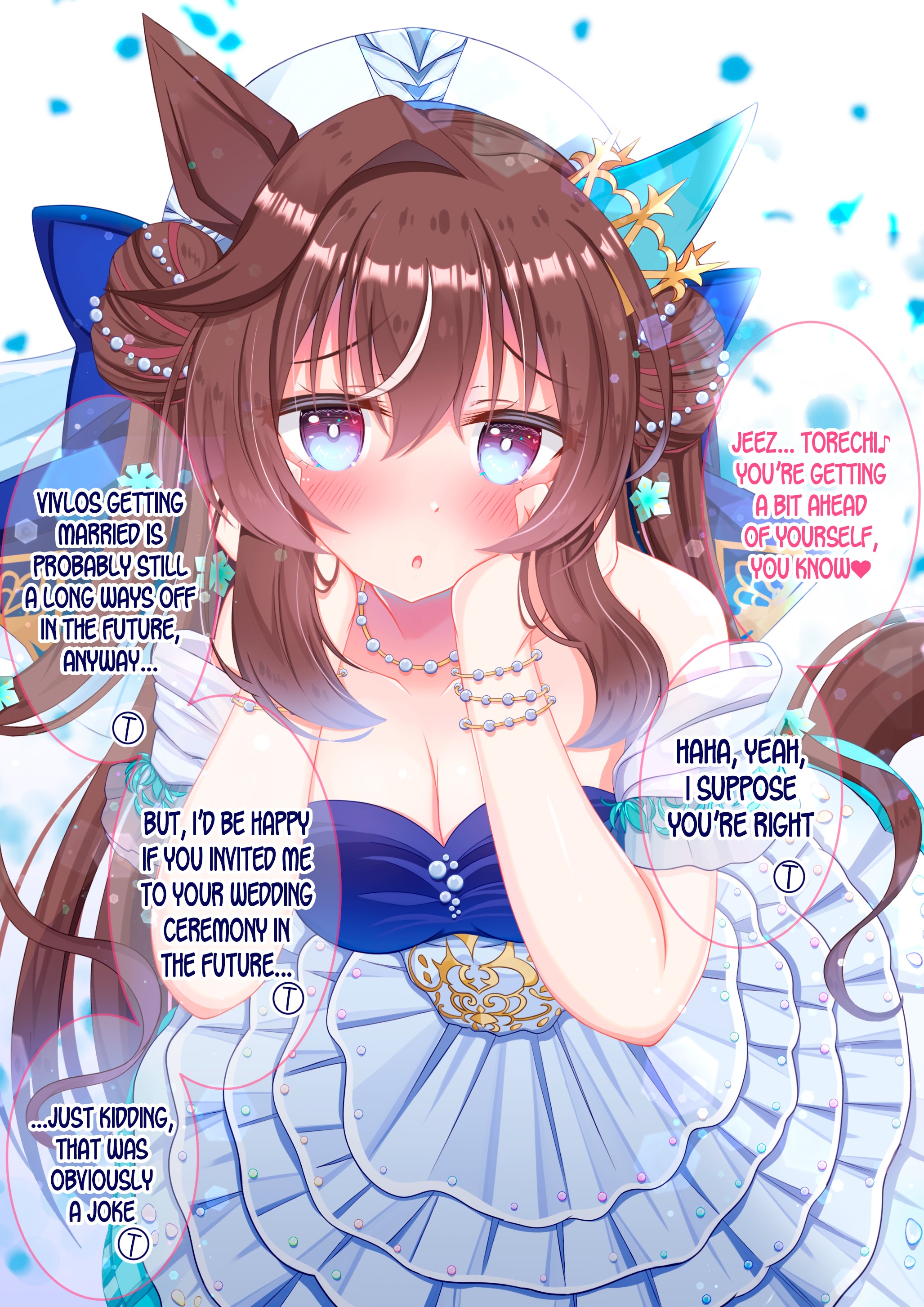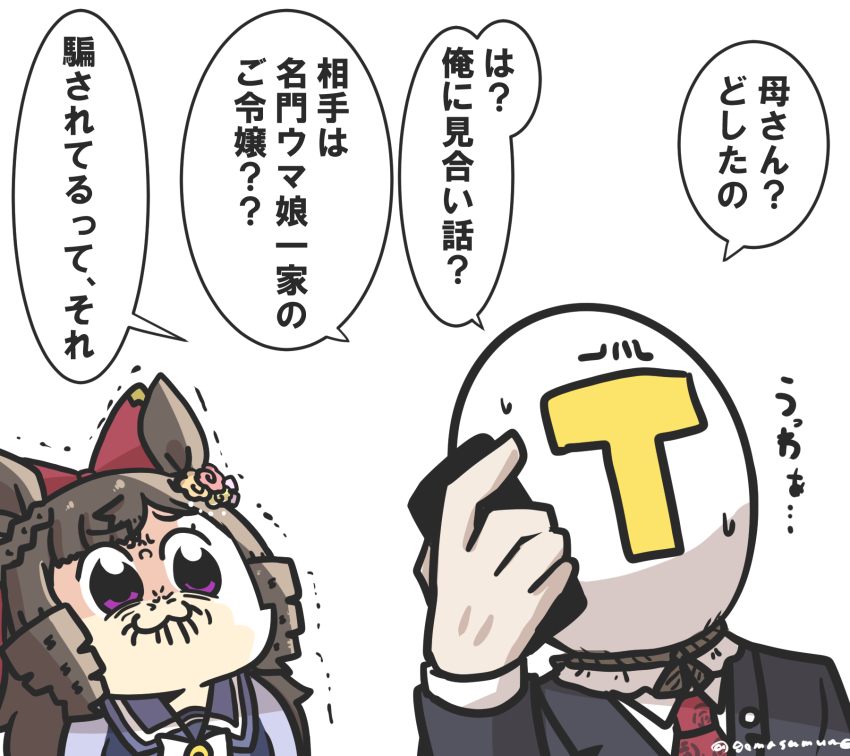 >>561391649>Mom? What's the matter?>Huh? A marriage interview for me?>And the other party is the heiress of a prestigious umamusume family??>Must be some kinda scam, yeah.