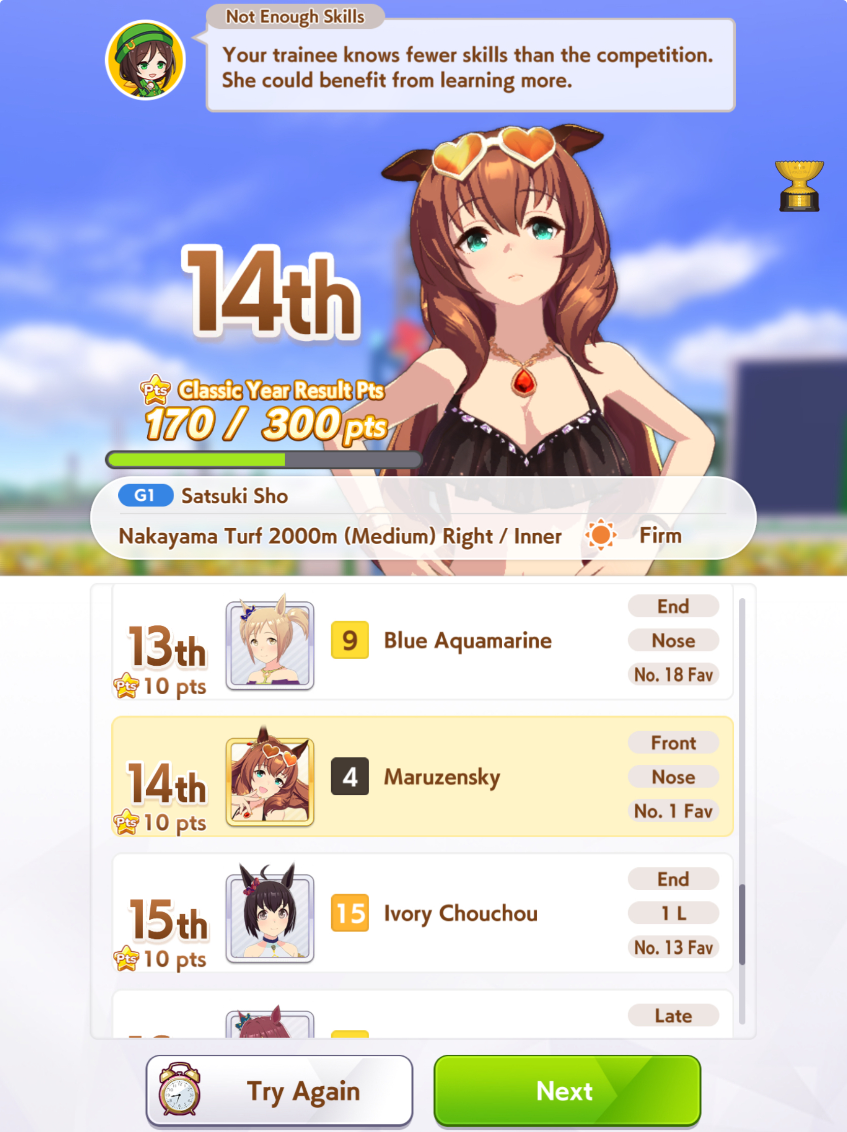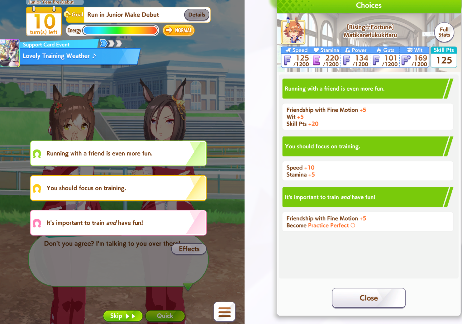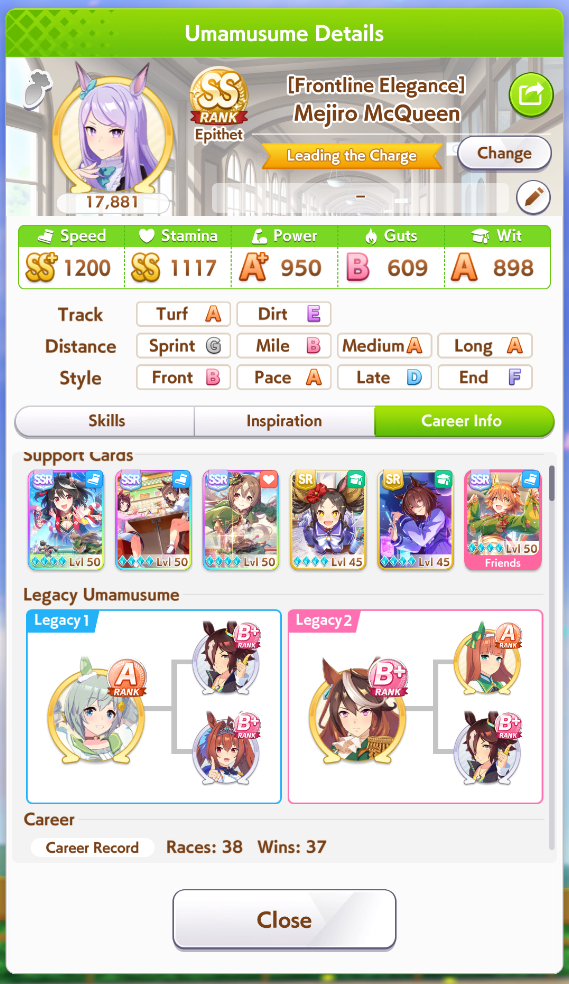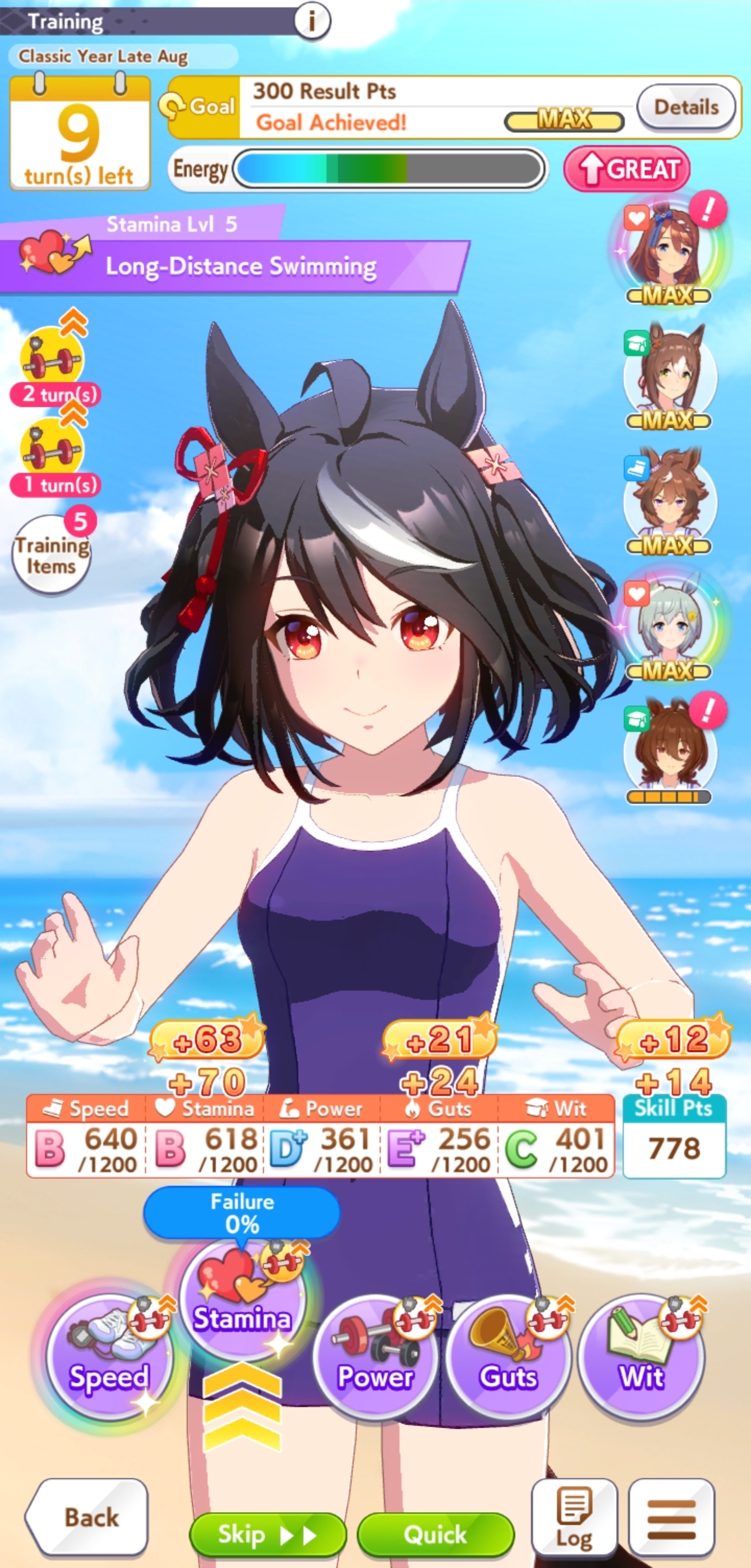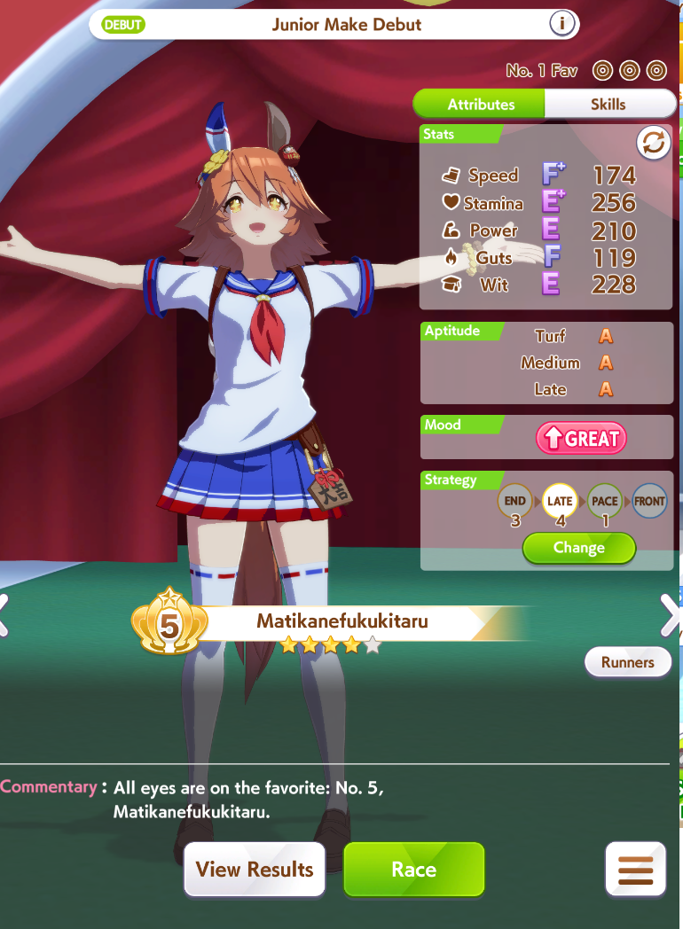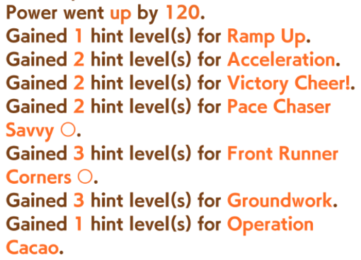 >>561407985Wit trained! Got +30 skill points from event.Now we can do our first mile race. No rival on it though.Also don't forget the shop items!