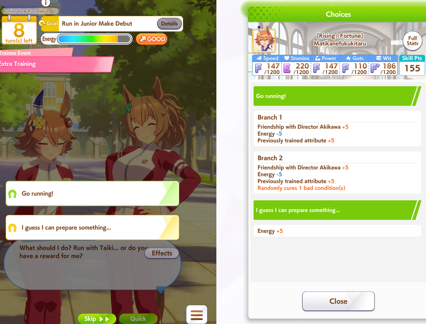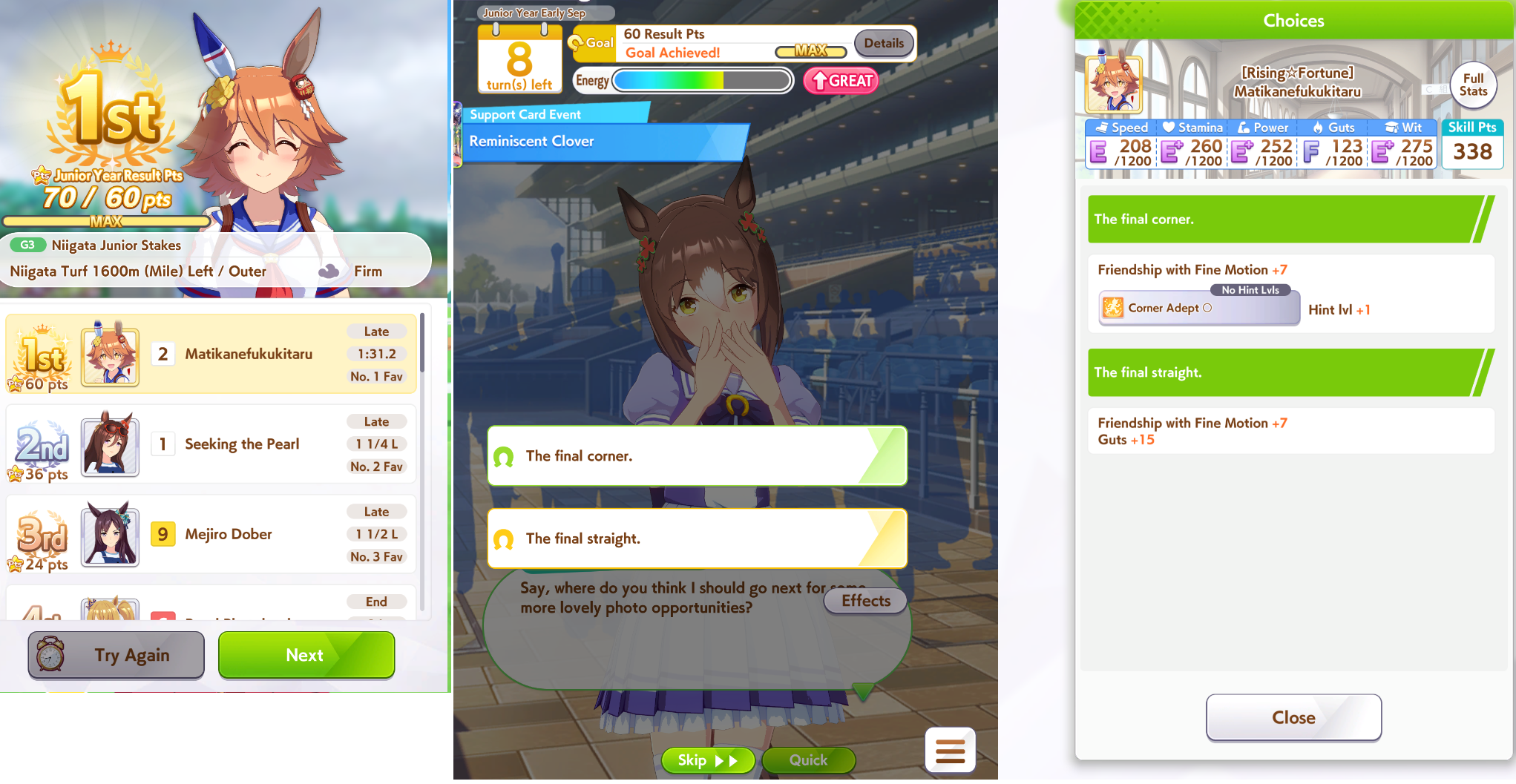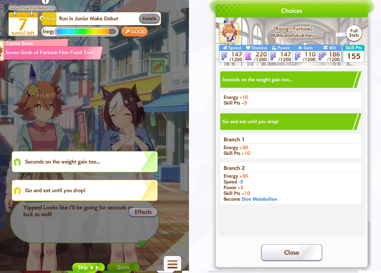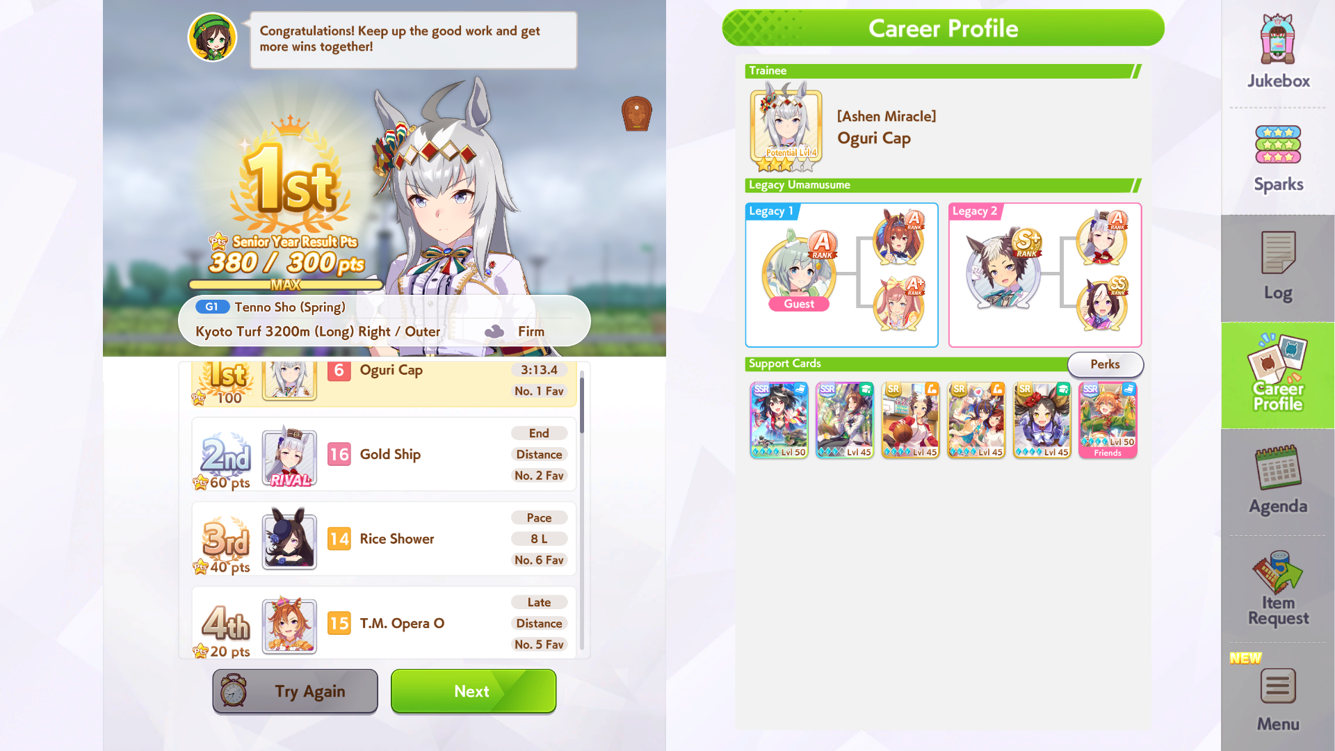 >>561407985Wit trained! Got +30 skill points from event.Now we can do our first mile race. No rival on it though.Also don't forget the shop items!