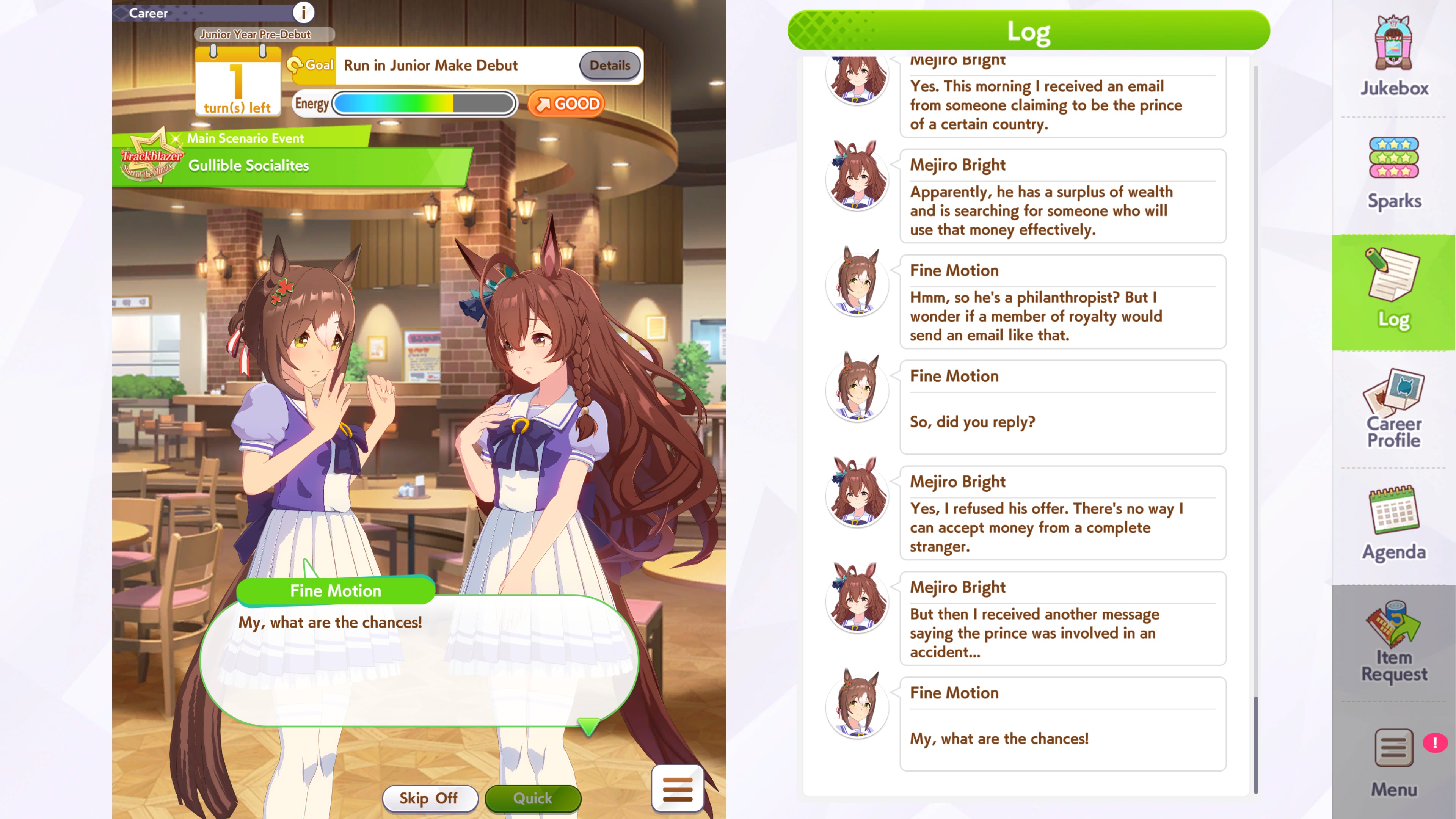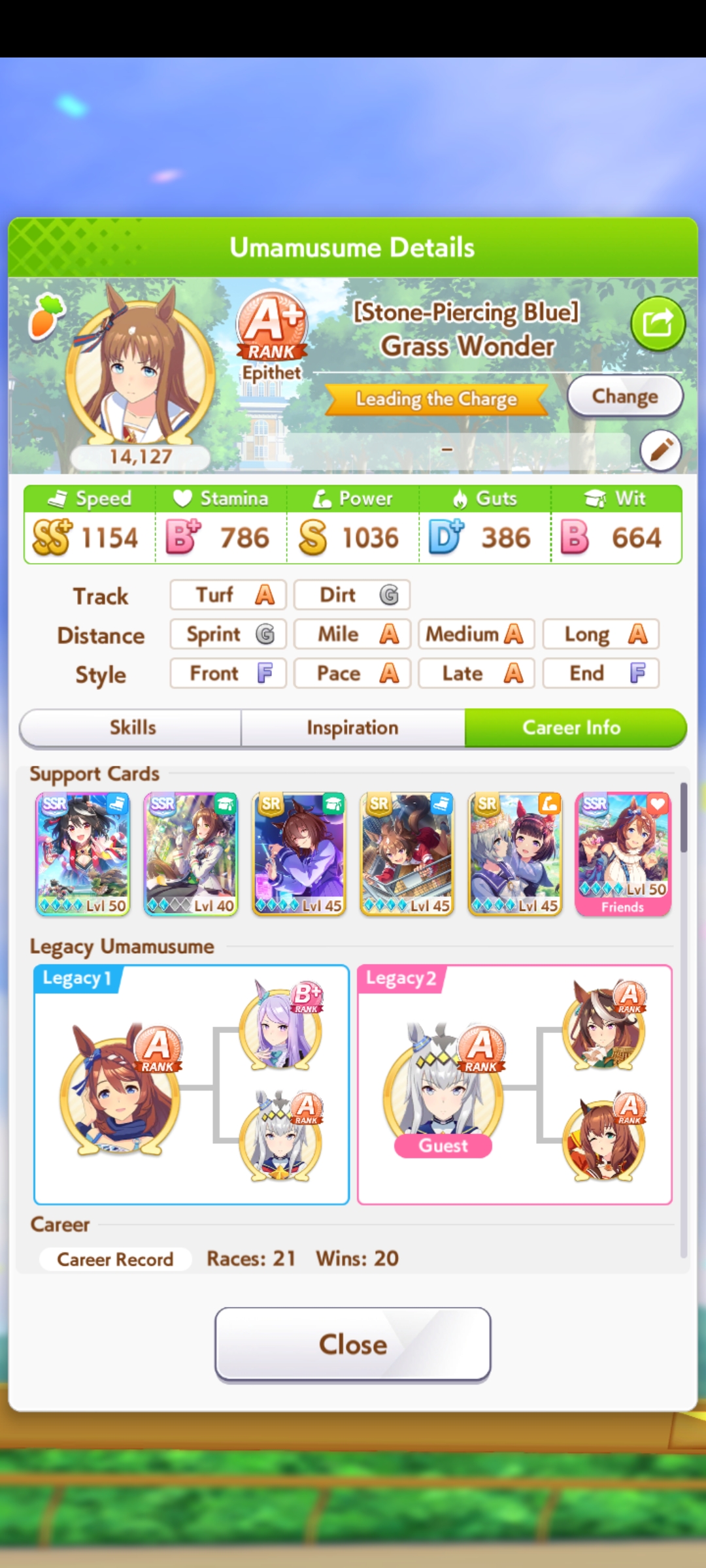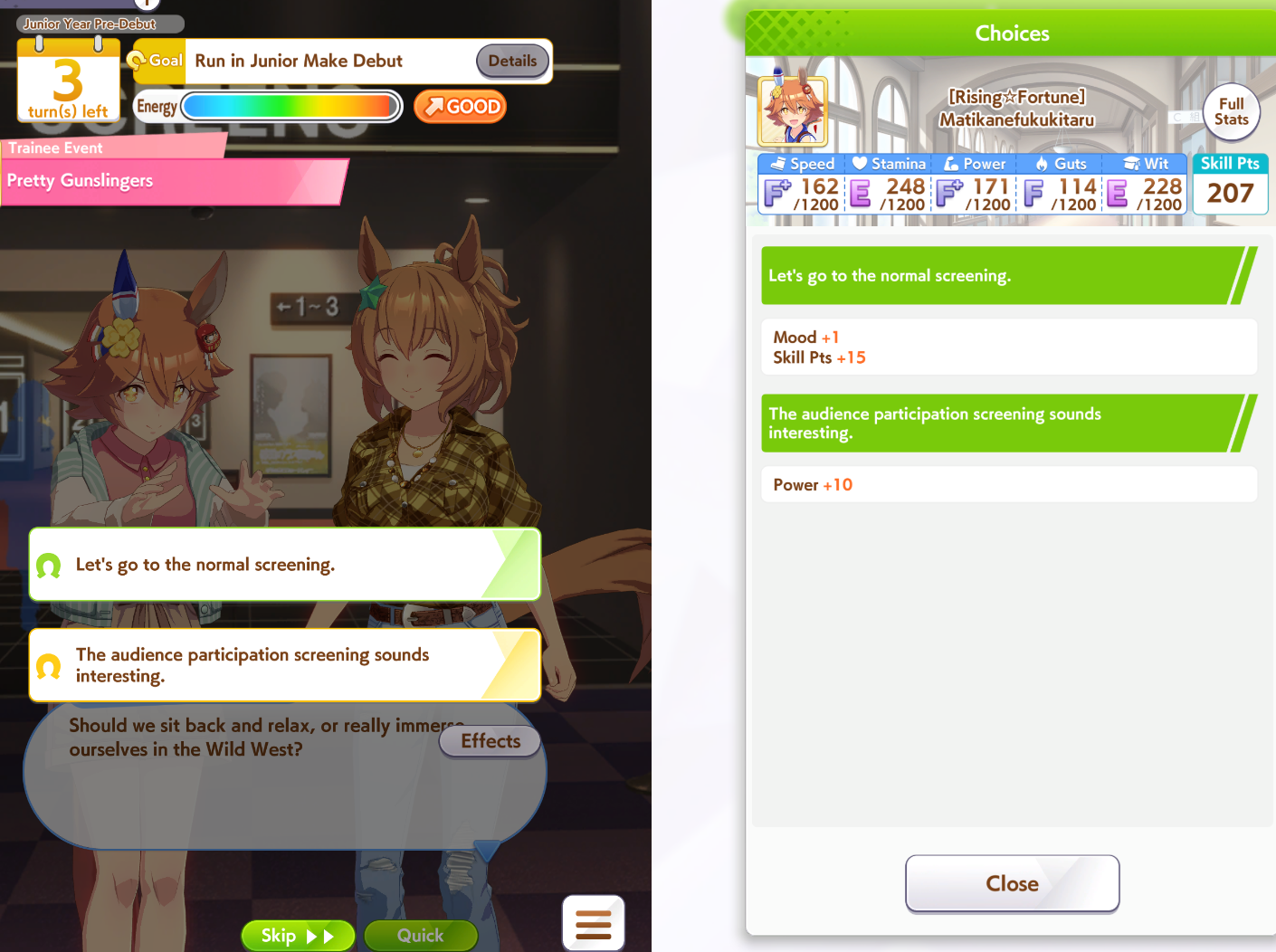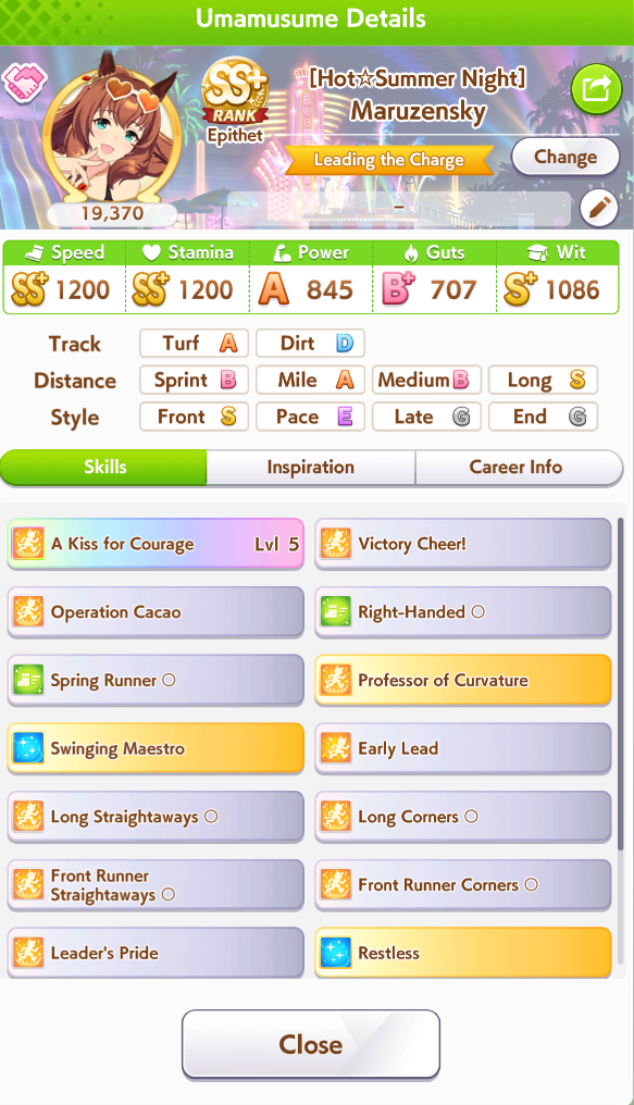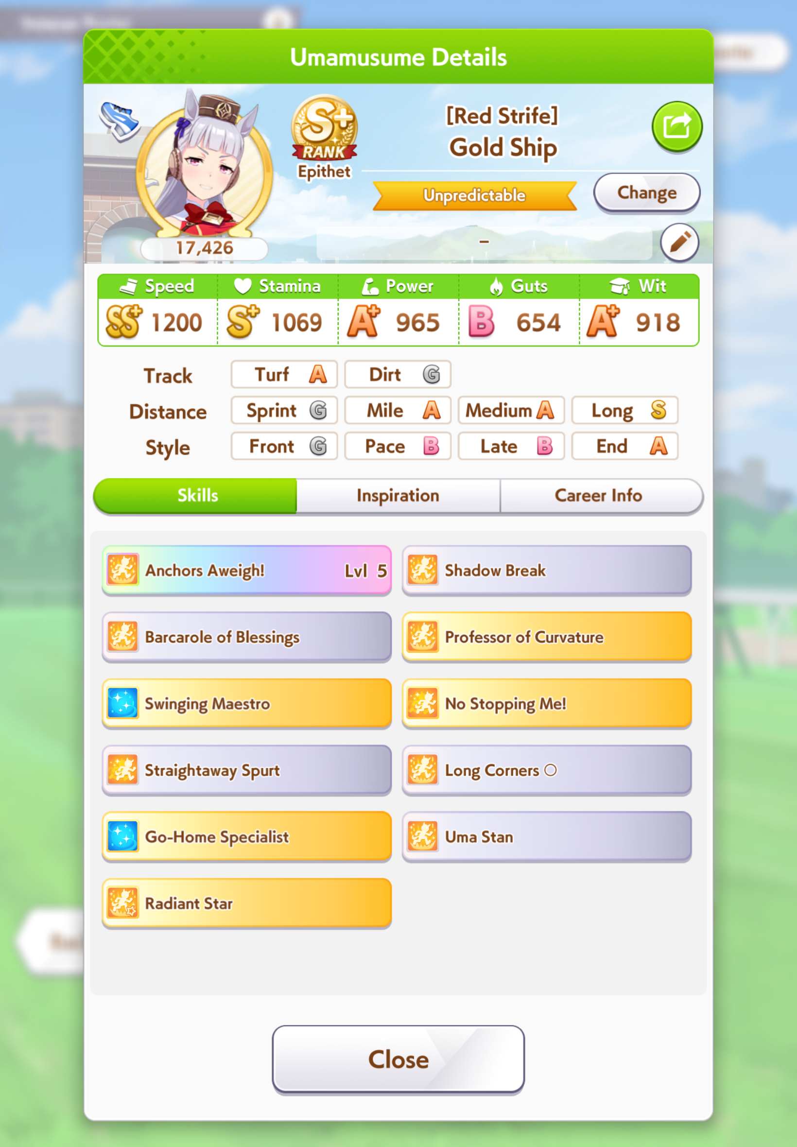 >>561407985Wit trained! Got +30 skill points from event.Now we can do our first mile race. No rival on it though.Also don't forget the shop items!