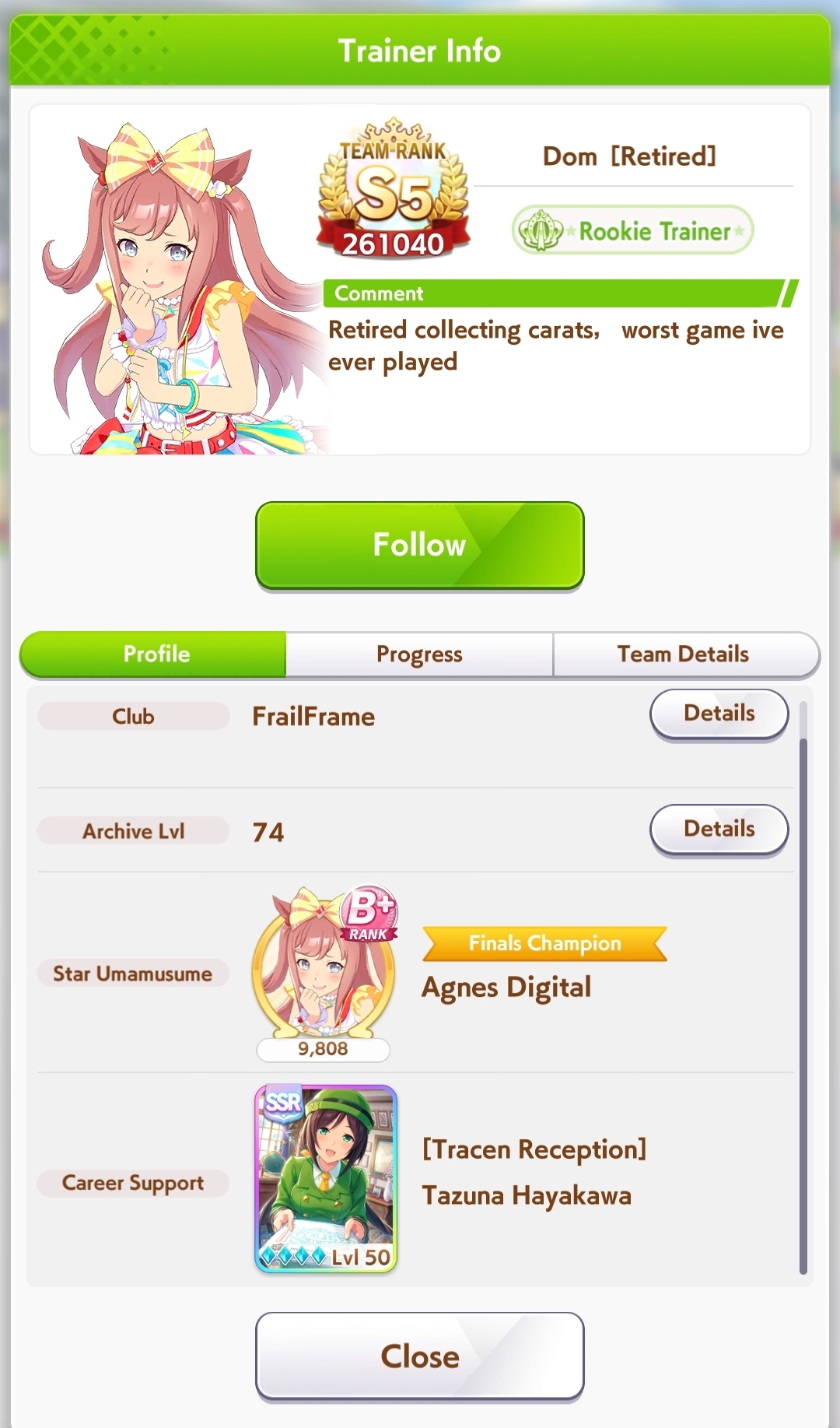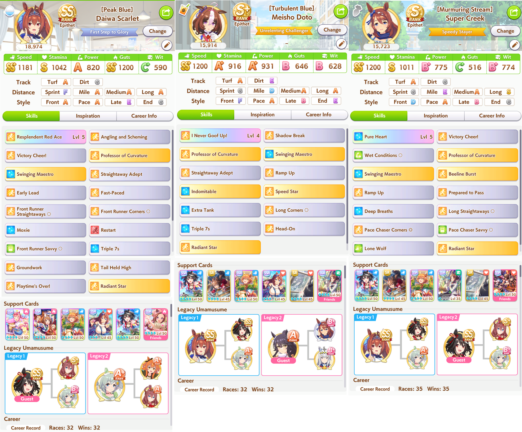 Stamina requirements are some big ass gaslightYou know, in room matches everyone hovers around 1k stamina and gambles on radiant star. They do not lose to high stamina umas either.