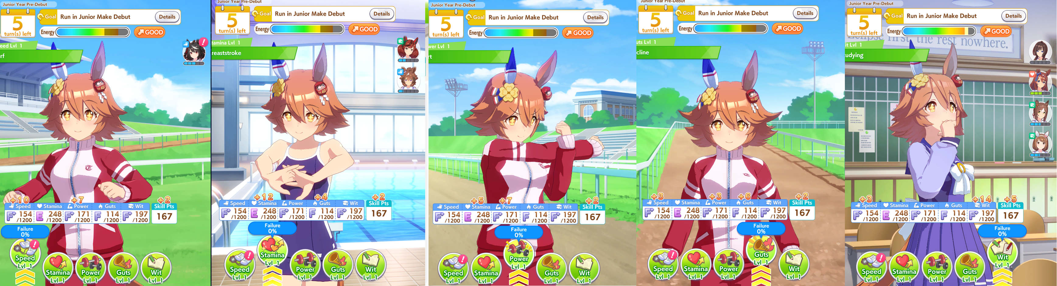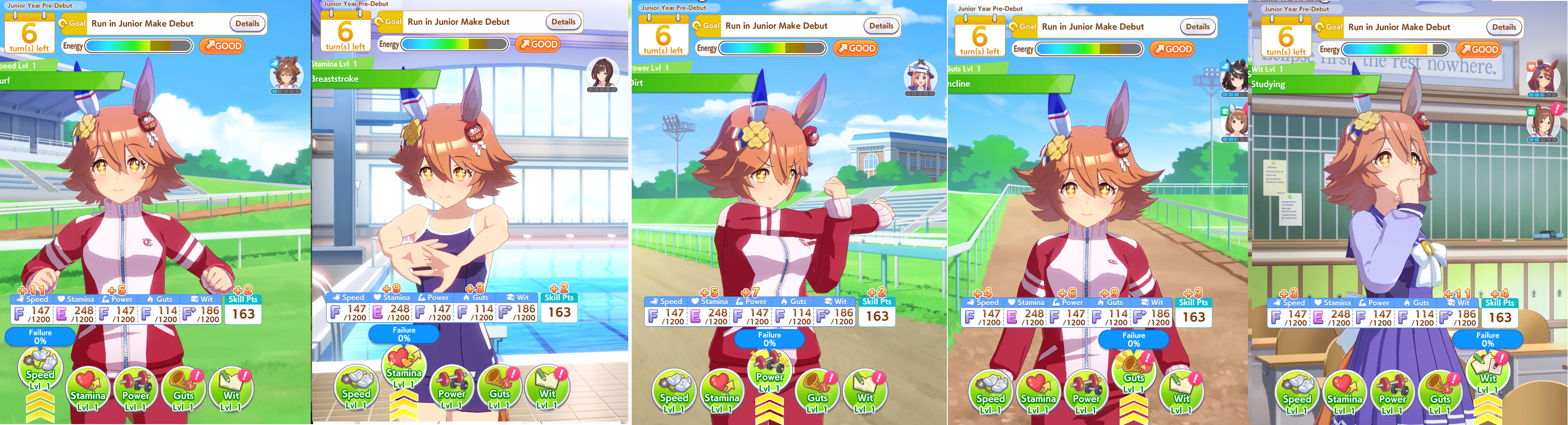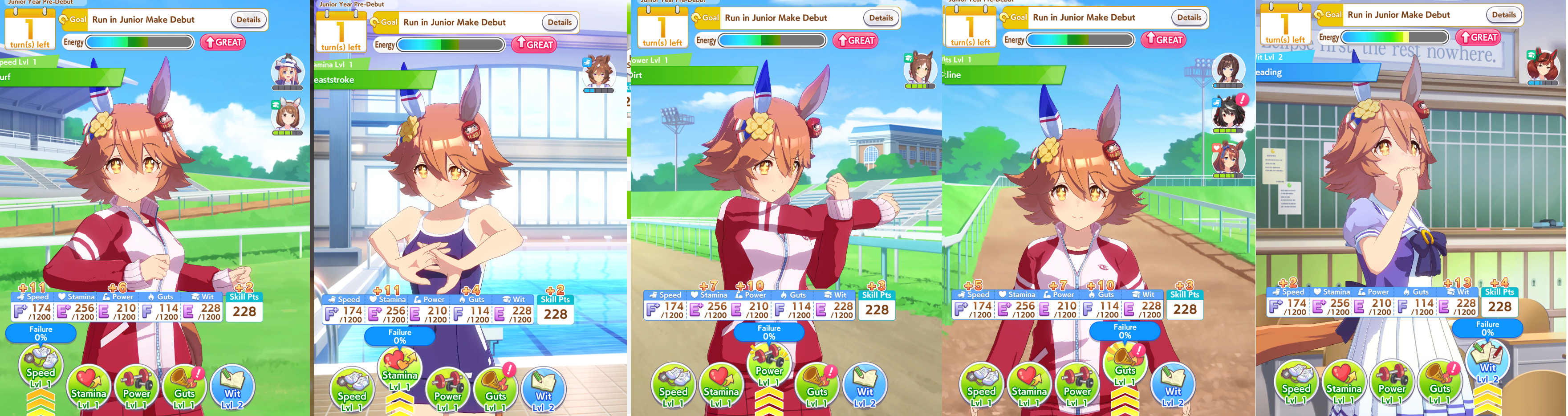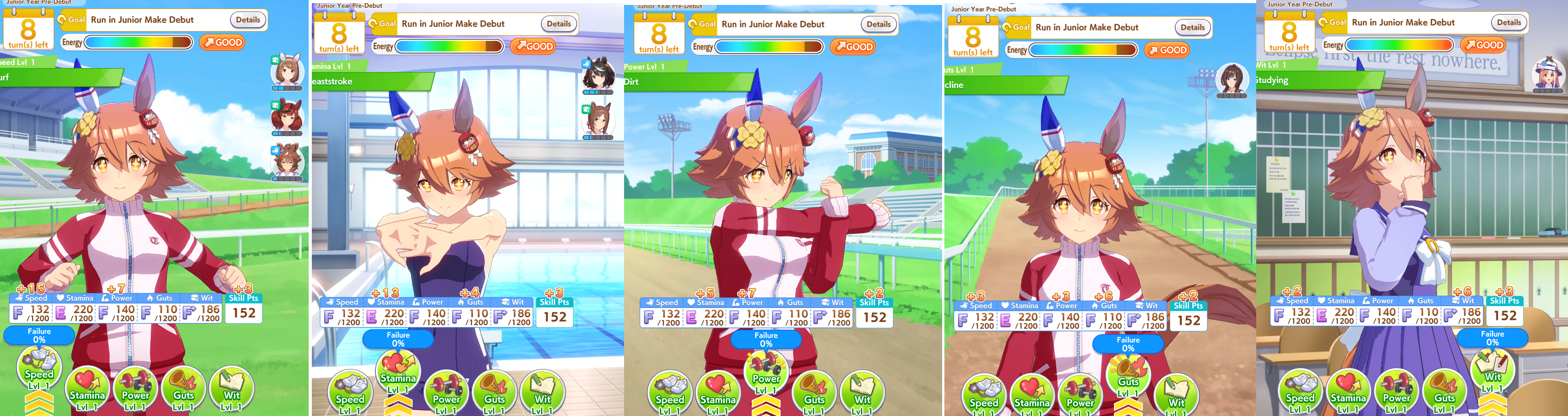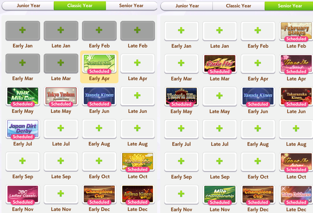 I tried the mixed turf and dirt mile/medium race rotation and this is literal torture, you have no turns to train and if you get no cupcakes to deal with the 5 consecutive races at the end of both years your uma blows up by the constant amount of mood downsthis shit sucks