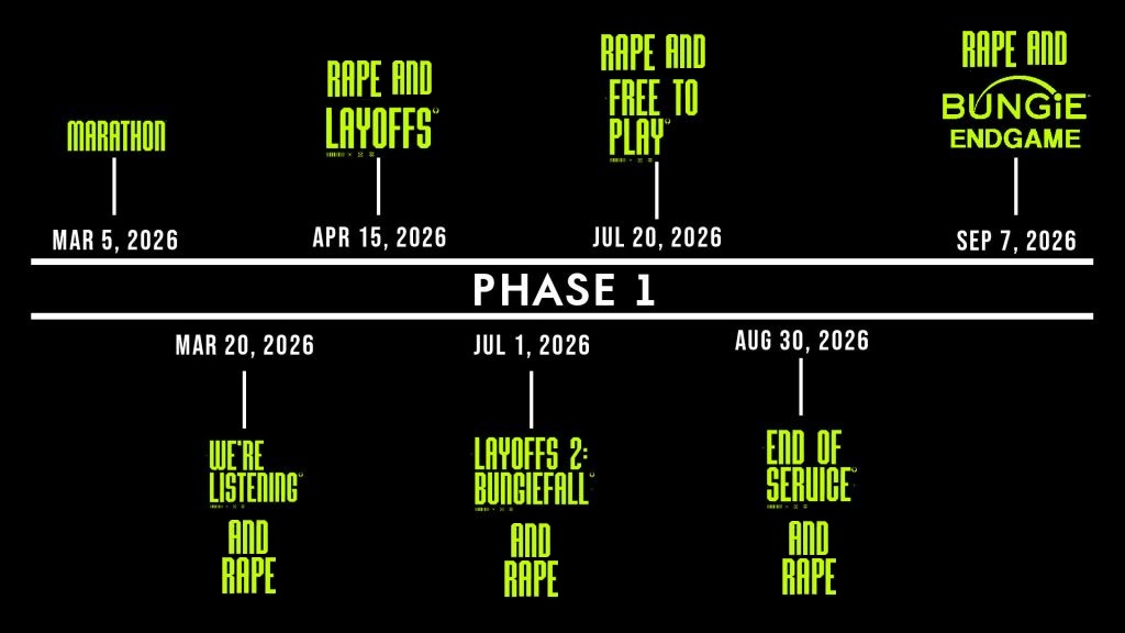 >>561432476>Why did Marathon flop?It's a bad game>What's next for Bungie?Rapes and layoffs>Destiny 3?kek