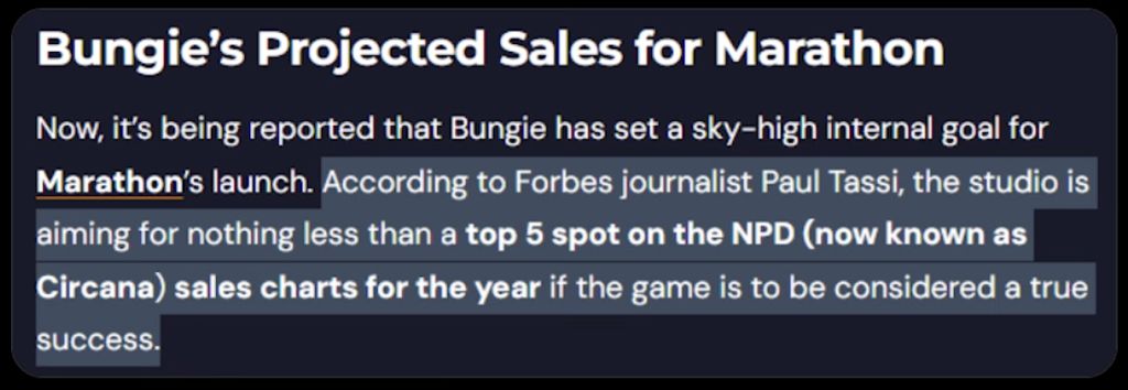 if Marathon is was expected to be a niche title, it should have been a side project with a smaller team.
