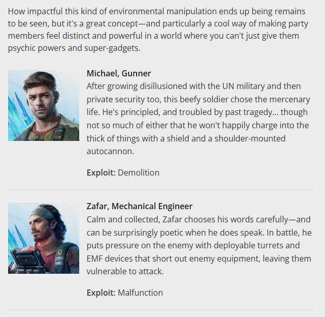 Nice, finally some osiris reborn info. It's funny that they're leaning into it being the new mass effect by having the entire cast be conventionally attractive. There's no joke character or ugly character, they're loading up on dollies for everyone. Nice, but I'm looking forward to more info on ship customization and combat and stuff too. The other important things.>>561457046bg3, dragon age, mass effect. Those are the big three for putting effort and reactivity into romances.>>561460332Yeah she's cool. And that game has some rpg elements which is nice. Quibbling over small differences in genre definitions when a game is fundamentally about roleplaying, and has decisions and diverging plot and stats and leveling and those fundamentals, always seemed silly to me.Give Midnight Suns a try. It has party dynamics in and out of combat, a turn based battle system, leveling and ability leveling, affinity/friendship mechanics that affect combat, puzzles to solve, an alignment system that affects mechanics, a few story decisions to make, and many other facets of a crpg. There's also the game actually called Capes.