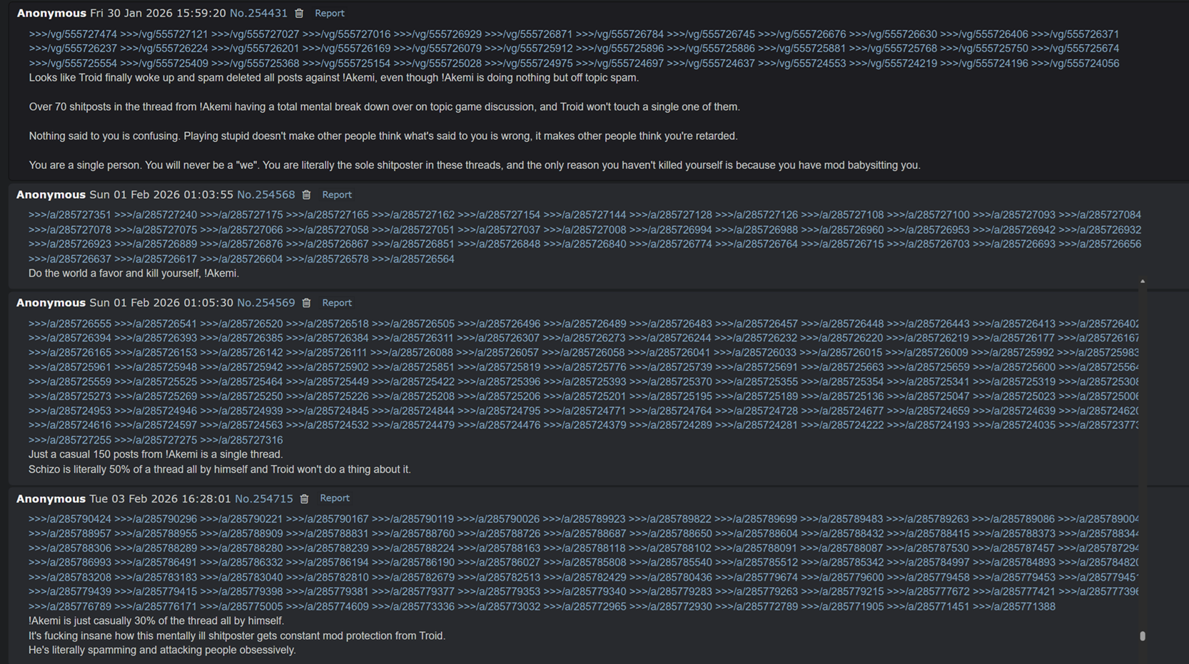 >>561505984>>561503508>>561503447>>561502132>>561498216It's honestly insane how legit mentally ill you are, !Akemi. How do you live like this?Reminder that no one else in the world acts like you.