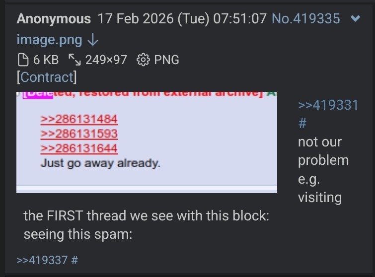 >>561494851>>561494196>>561494464What's it like knowing you're going to be seething and screaming about "ack" until the day you die?And again, NOTHING validate your mentally ill behavior.>>561495183>>561495318>can't address anything said to himYou lose.Still waiting for you to explain why "everyone" will hyper fixate on the fact they are called a samefag, and not ever even attempt to explain why their behavior of attacking people is normal or exceptable.Nor will any of these "different people" ever link to posts outside of these threads that share their behavior pattern.