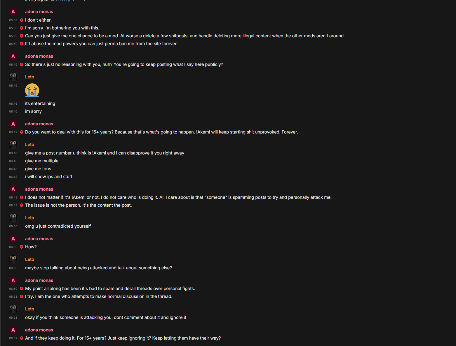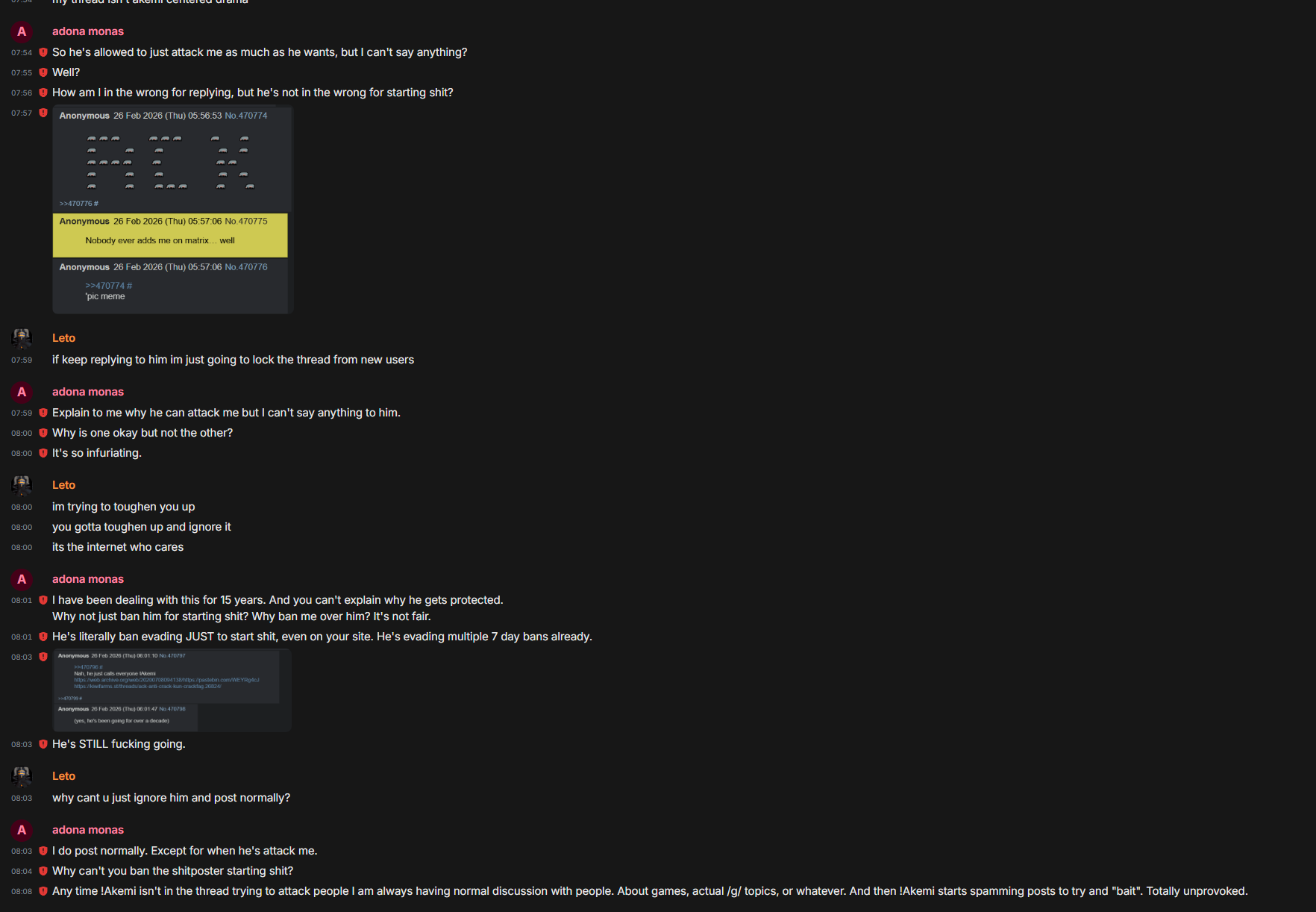>>561494585I'm waiting for the screencap showing Leto saying that he is on board with adona monas-chan's narrative that only Akemi is attacking him.