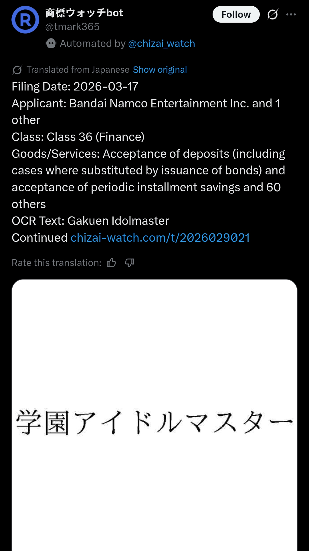 iDOLM@STER ThreadPrevious iM@S Thread: >>561433248Official website: idolmaster-official.jpJapanese news: imasnews765.comEnglish wiki: project-imas.wikiAPKs: apk.ksmz.moeOld archive of materials: sites.google.com/view/yukipobackupOld FAQ + Resource Links: pastebin.com/icRtaLvvMaterial translations + Music downloads: pastebin.com/DebHdukECharacter birthdays: pastebin.com/cLdezeDuNext thread OP: pastebin.com/A5UGxTuBHelpful Links: pastebin.com/Z70CGAsN>Event/Gacha Dates (Mar 20th): >>560923245 >>560923292- Previous News: >>561433258THURSDAY:Mar 26th, 7:50PM JST: TOURS on Dengeki Game Live: >>561335827Mar 26th, 8PM JST: Miki's "Afuu TV" returns: youtu.be/nVKy6FD_Dgk >>561027359Mar 26th, 8PM JST: VL Cosmo plays Shogi with Tomoshika Hikasa: youtu.be/xPKvMAY0d9AMar 26th, 11PM JST: VL Letora sings "Praline": youtu.be/NlgnmdRWOHg >>561311564FRIDAY:Mar 27th, 7PM JST: Theater Days Shadow Bout Engage! stream: youtu.be/Eq8VAcxhOik >>560413832 >>560850923Mar 27th, 9PM JST: VL Cosmo's Drawing Stream: youtu.be/-QlDgRqSQGoMar 27th, 11PM JST: VL Cosmo's Members-only stream: youtu.be/yjYzjUFpxngMar 27th: Million Live Anime OVA ~Itsuka, Mannaka de~ BDMar 27th: Gakuen Yorinui Ume/Misuzu/Sena: >>546474140Mar 27th to Apr 4th: Cinderella Girls x Puzzle & Dragons "Super Godfest" collab: >>561234053 >>561237002 >>561237132 >>561237247 >>561237419Mar 27th to Apr 5th: SideM POP UP SHOP ~Dream Showcase!~ at MAGNET by SHIBUYA109 and JOL Collab Store: >>557732251 >>560823189Mar 27th to Apr 5th: Shiny Colors x Darts Hive Pop Up Shop