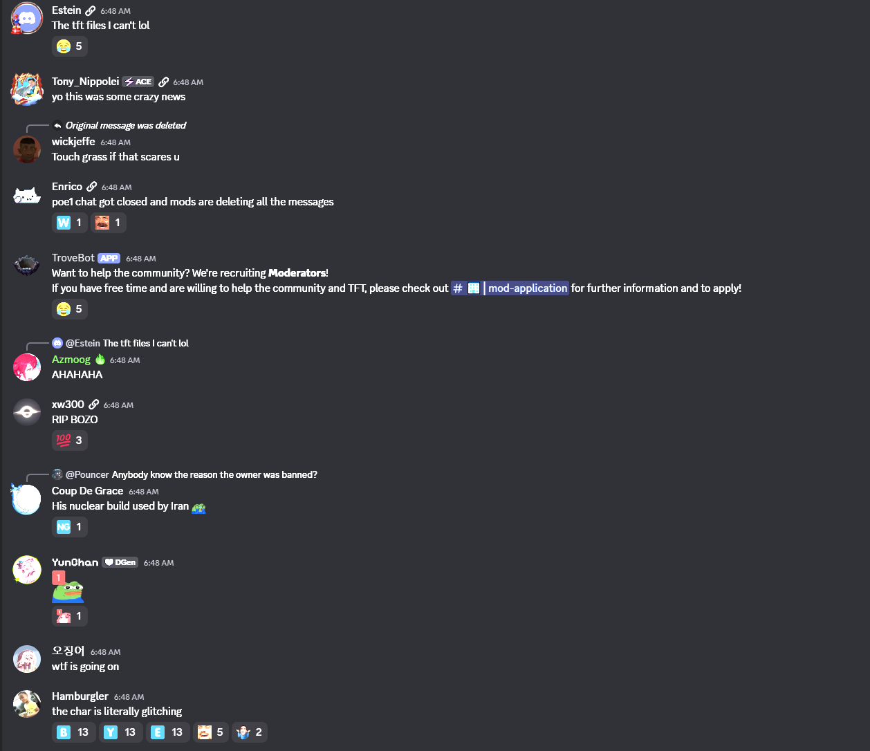 so why was the TFT discord nuked?all because 1 retard got banned?