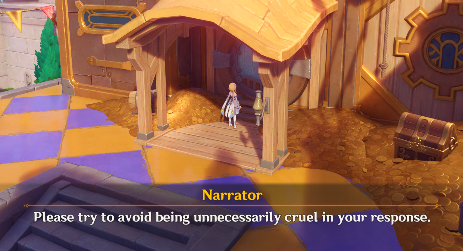 Collecting my daily primogems and mora from papi Pantalone