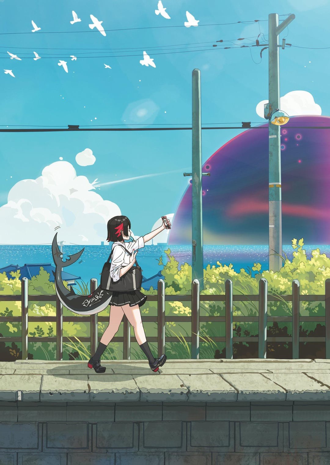 >>561541523Idk something cool like promeia that makes her look a little sinister to contrast with her cute appearance and foreshadow her role.