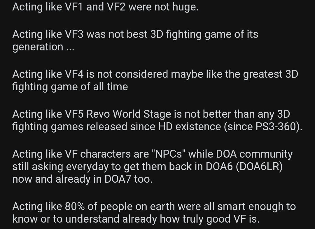 if vf is chess then tekken is that game black people play where they throw dice at a wall