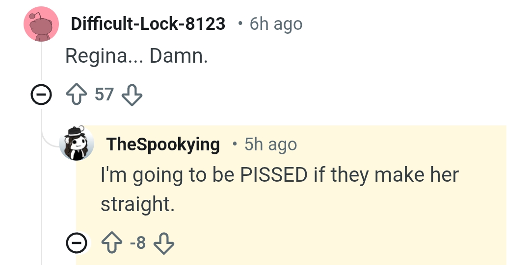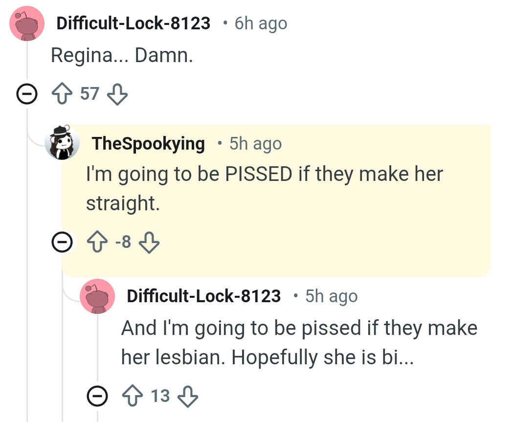 >>561521938The comment that said they would be pissed if she was lesbian was upvoted