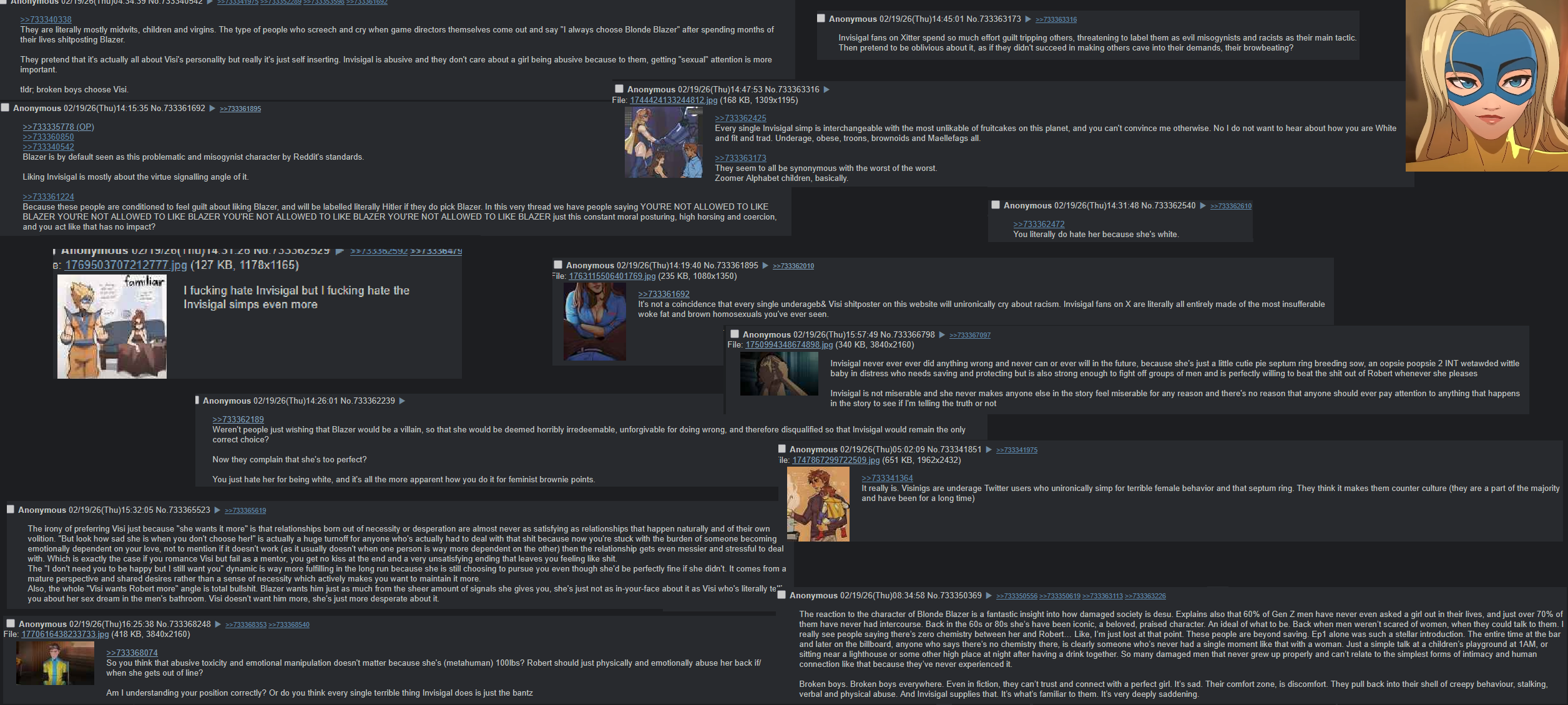 >>561563413>thread with Visi in the OP, the subject not even concerning exclusively Dispatch >look inside>BLAZER BETTER BLAZER BETTER FUCK VISI REEEEEKek. It's a shame it was taken down so quickly and BBschizos didn't have a chance to really get going this time and seethe about broken boys hating Blazer for being white.