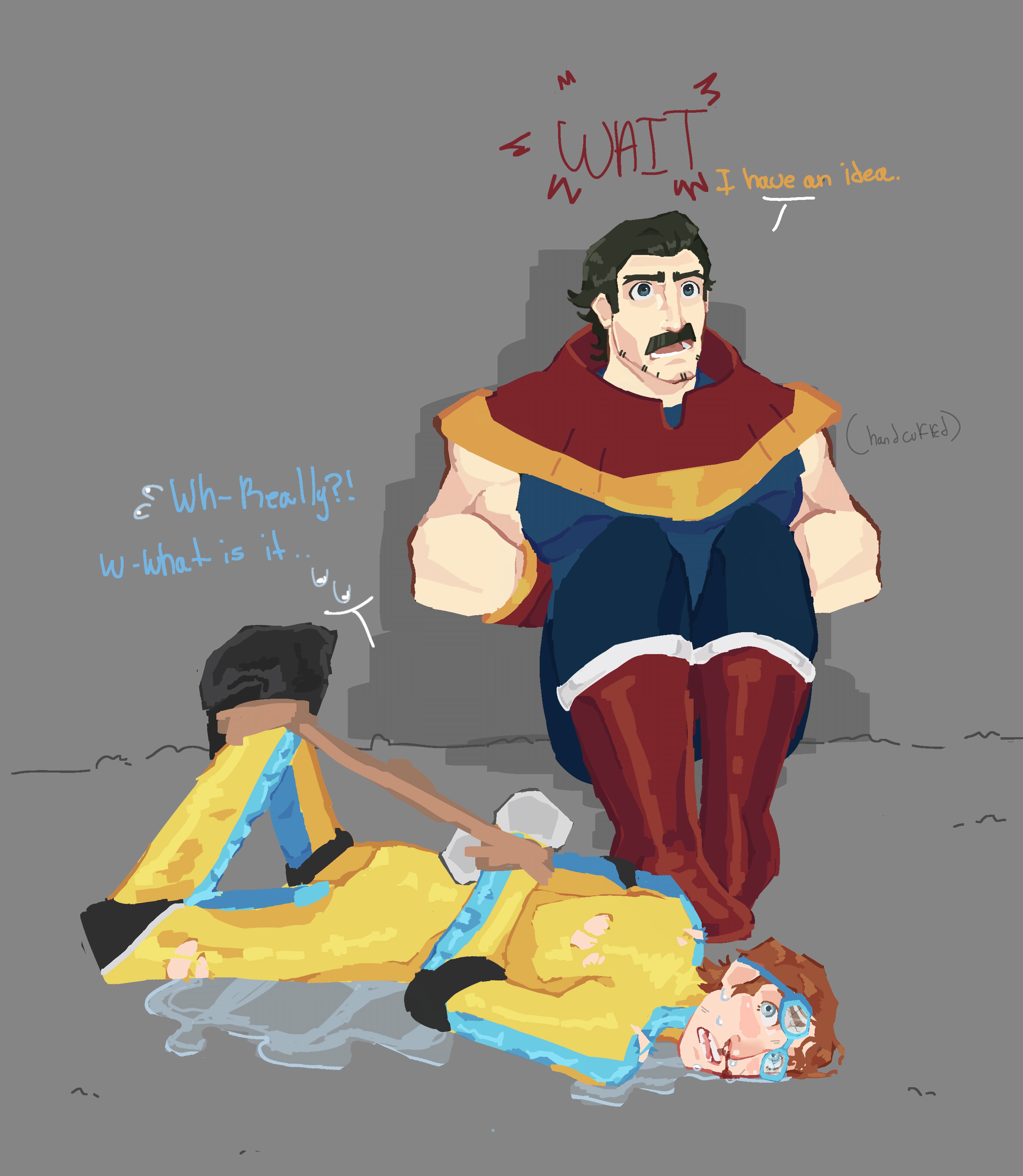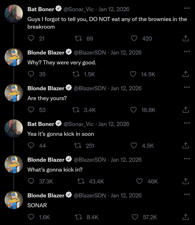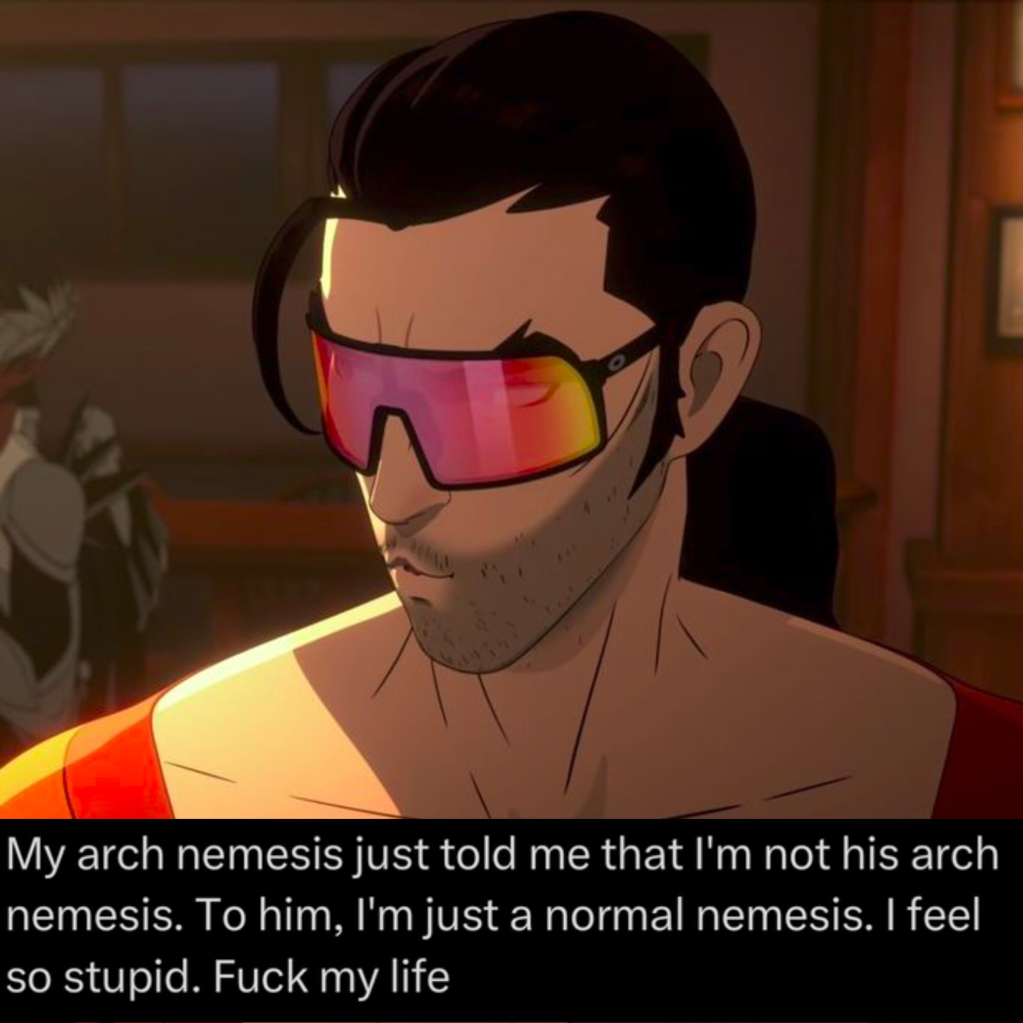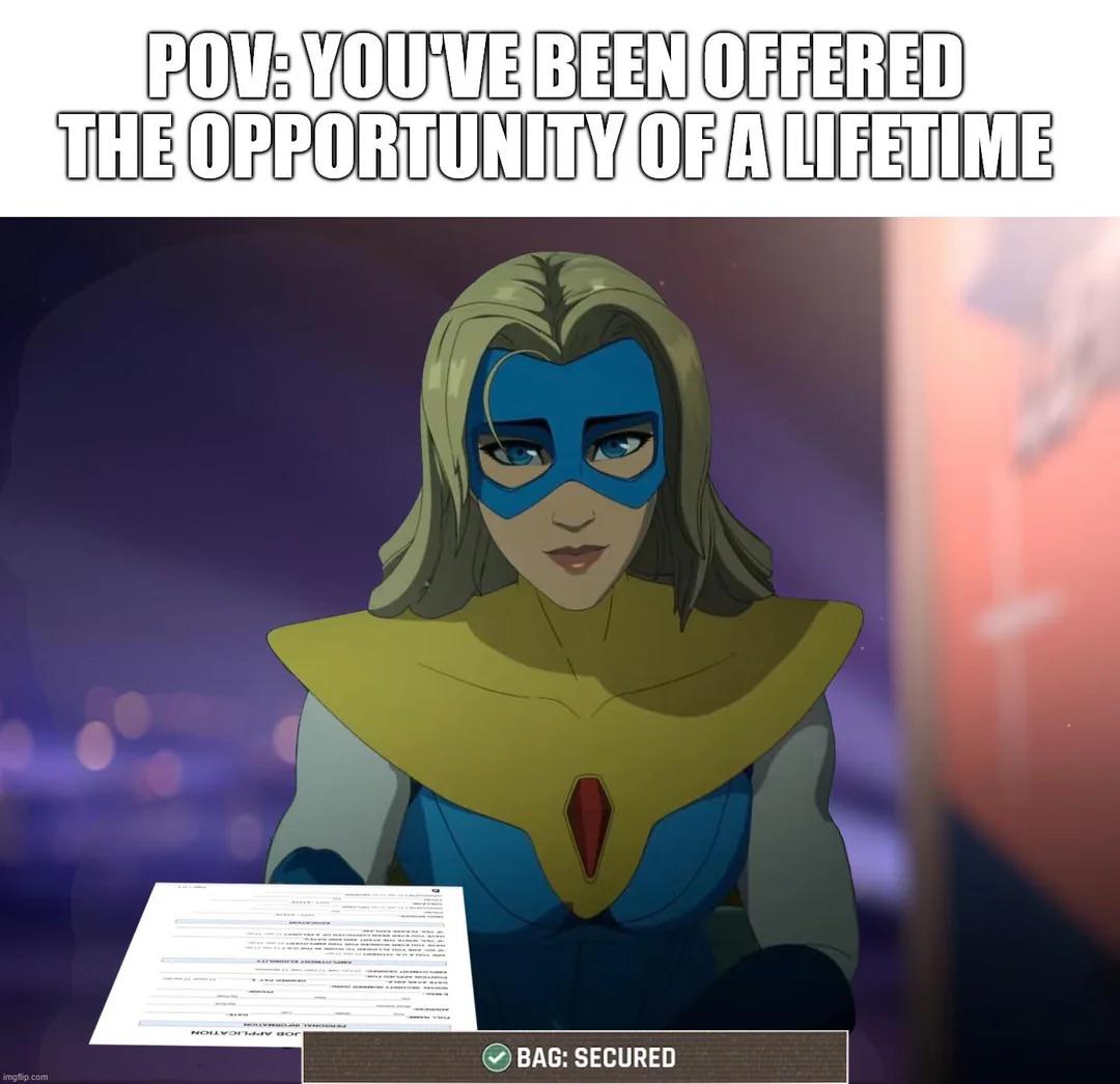 >second day of your shitty desk job >have to cut one of your reformed super villains who will definitely relapse into their bad behavior the moment they're cut loose from the program>one of them is an assassin with a kill count so high it had to be censored>the other can transform into a giant bat monster and has a history of eating people