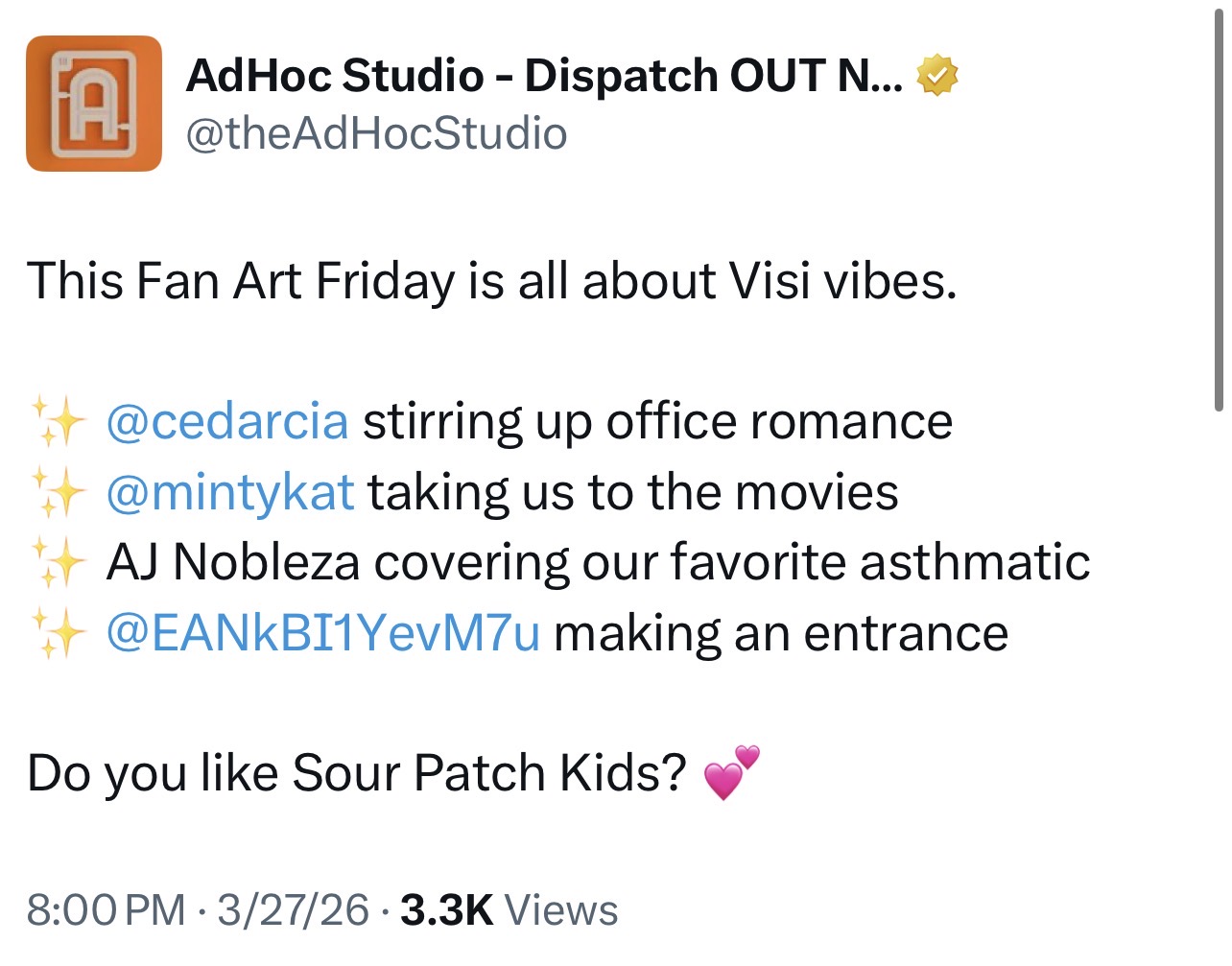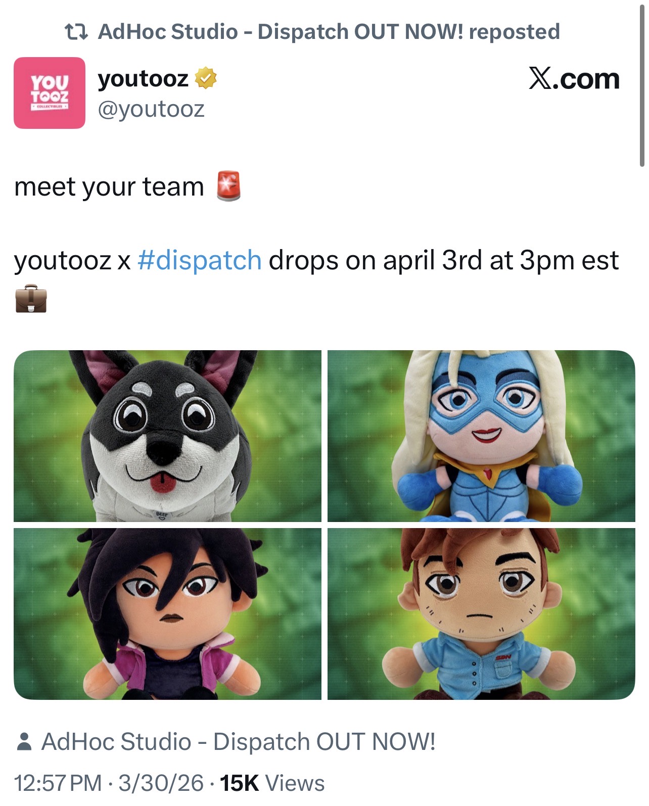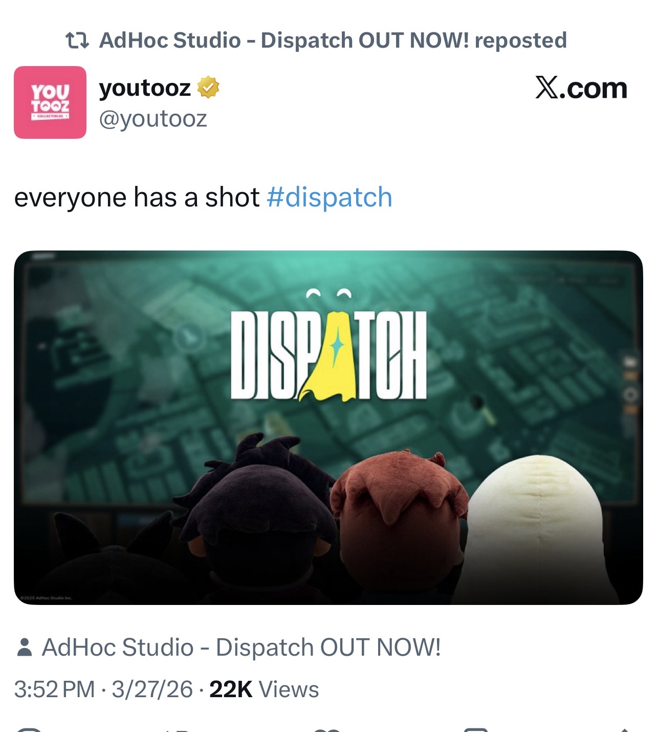 Going for a Walk EditionA general thread to discuss Dispatch by AdHoc Studioshttps://store.steampowered.com/app/2592160/Dispatch/>Dispatch merch store featuring new merchhttps://store.adhocla.com/>Fanart Fridayshttps://x.com/theAdHocStudio/status/2035099127072092231>Dispatch devs on The House of the Dev Podcasthttps://www.youtube.com/watch?v=9KOsGfV7h-Y [Embed]>Dispatch save file inspector (PC only)https://sdnrecordsdepartment.io/If you're unsure where to find your save files click on "where are my save files" on the bottom right and copy the file pathPrevious thread: >>561008074