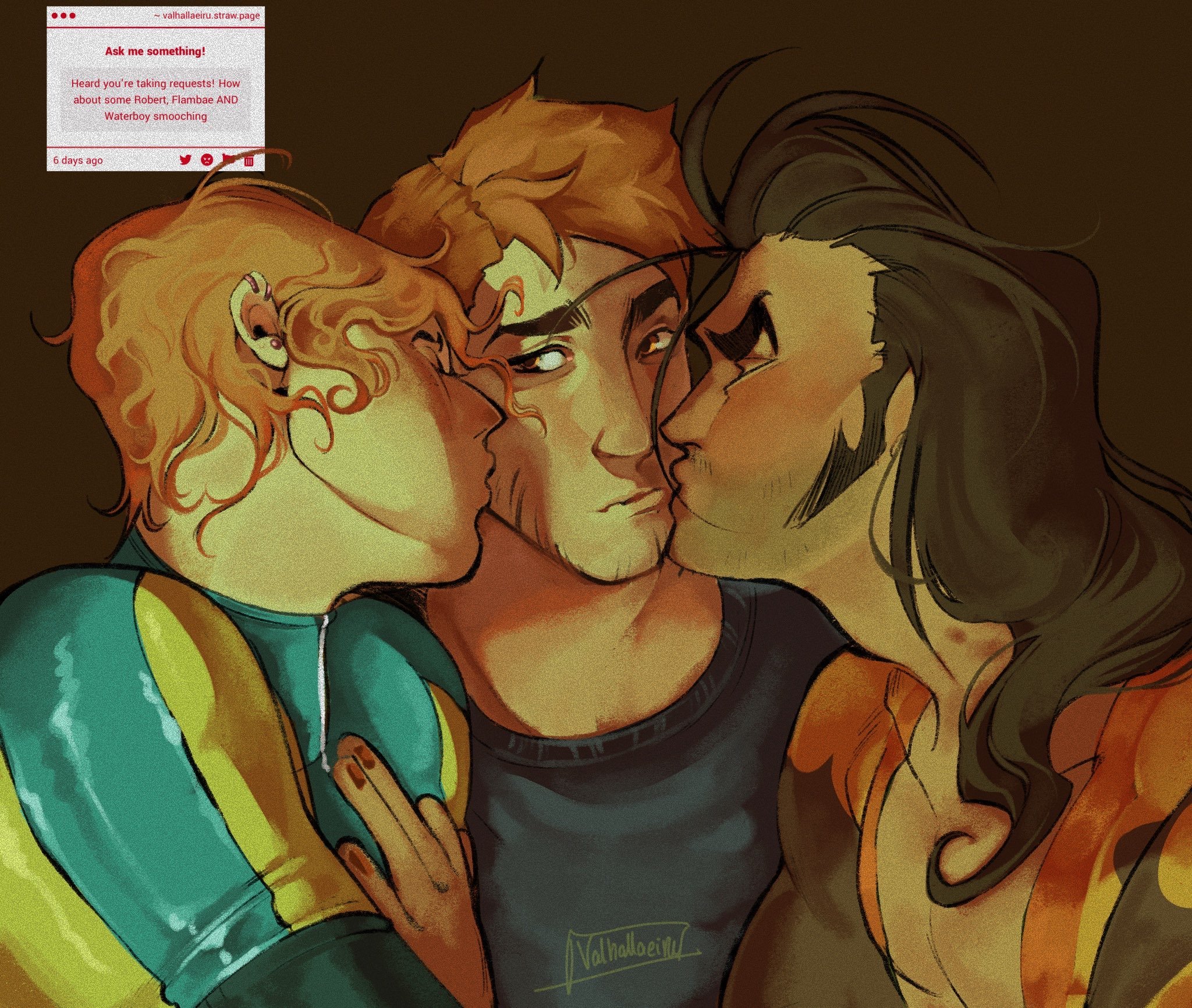 >>561588316The reverse too. Courtney/Mandy gently pulling on Rob’s tummy hairs with their lips.