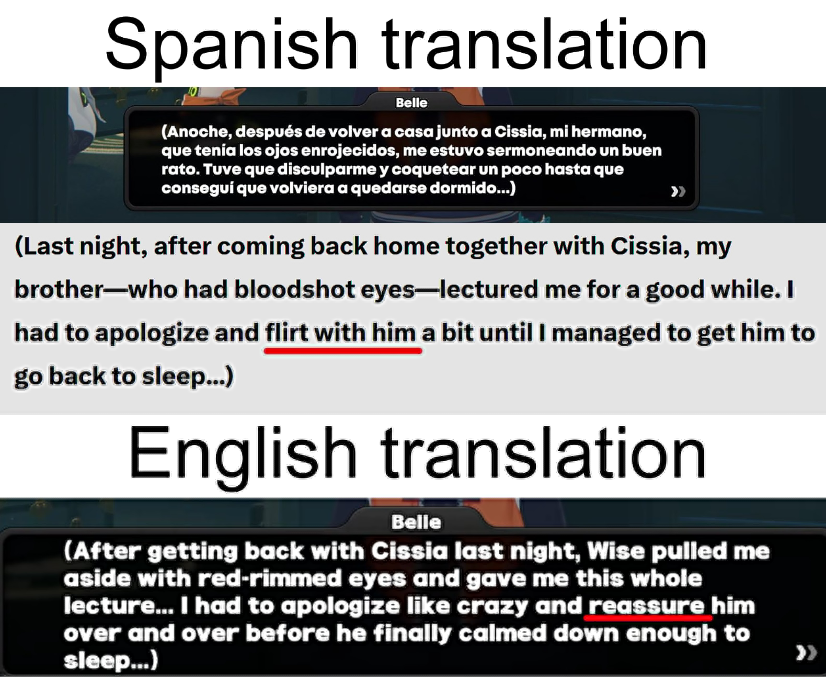 >>561576597Look at the Chinese translation. Belle literally says she had to sleep next to him and "reassure" him. The English translation is cucked to hell and back.