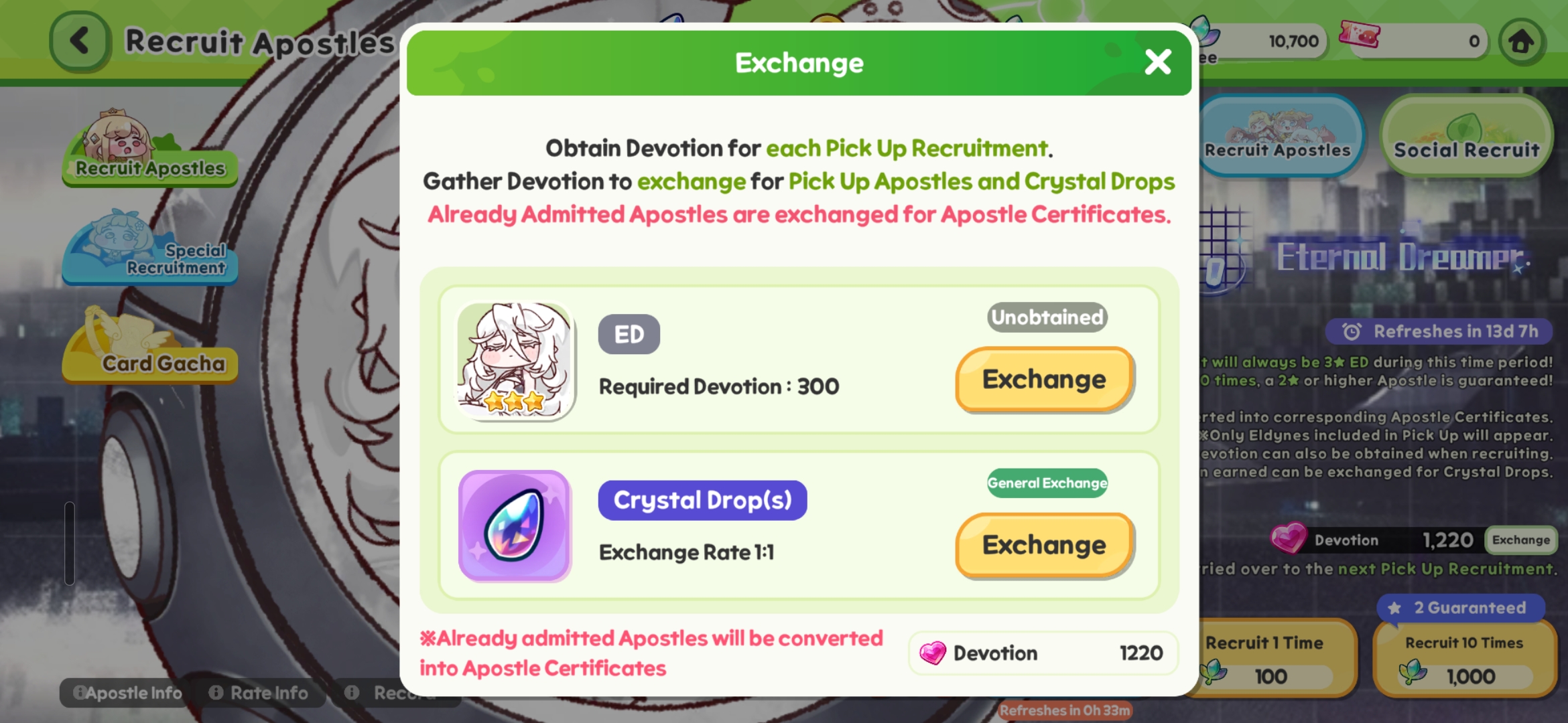 >Personality recruitment is much more efficient for aiming for specific units outside of the current rate-up for ED, but you can also still roll for ED in the composed bracket and it actually is more efficient than pick-up to do so if you're missing at least 3 composed 3*. While cost is higher to pity a unit, the exchange rate for crystal drops is also more efficient, which means a better cost-return for certs in the shop.