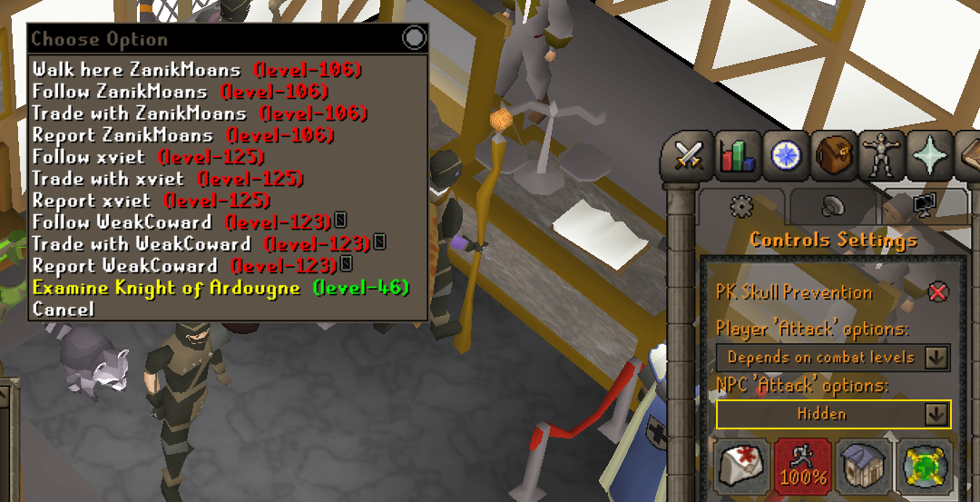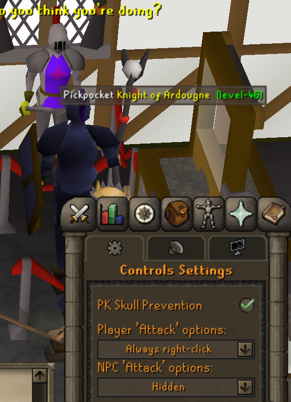 you used to be able to just select "hidden" on npc attack options so you could left click pickpocket npcs that you usually attack like ardy knights, now it removes both attack and pickpocket