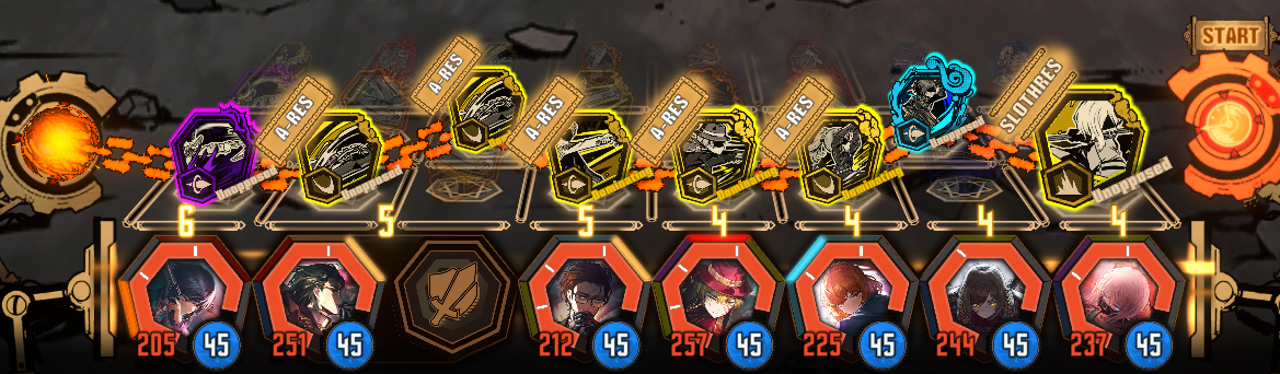 >>561636070My team is1. middle sinclair2. qoh don3. lcb ryoshu4. dieci rodya5. zwei ishmael6. firefist gregor7. multicrack faustThis team can winrate in 5 turns without any input regularly but rng will make it last 6 turns sometimes. You could use egos and stuff to win faster but the point is to winrate and alt tab. For blunt this is the fastest team I've done but just do 1 a day and save modules because slash and pierce can be winrated in 4-5 turns and 4 turns respectively, When Matthias releases you'll probably replace multicrack.