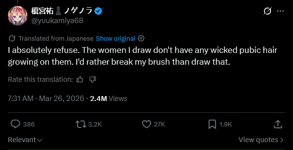 >>561622095I cannot believe you would think up something so vile...Honestly despite her not being my favourite design, the only negative here is her having pubic hair.